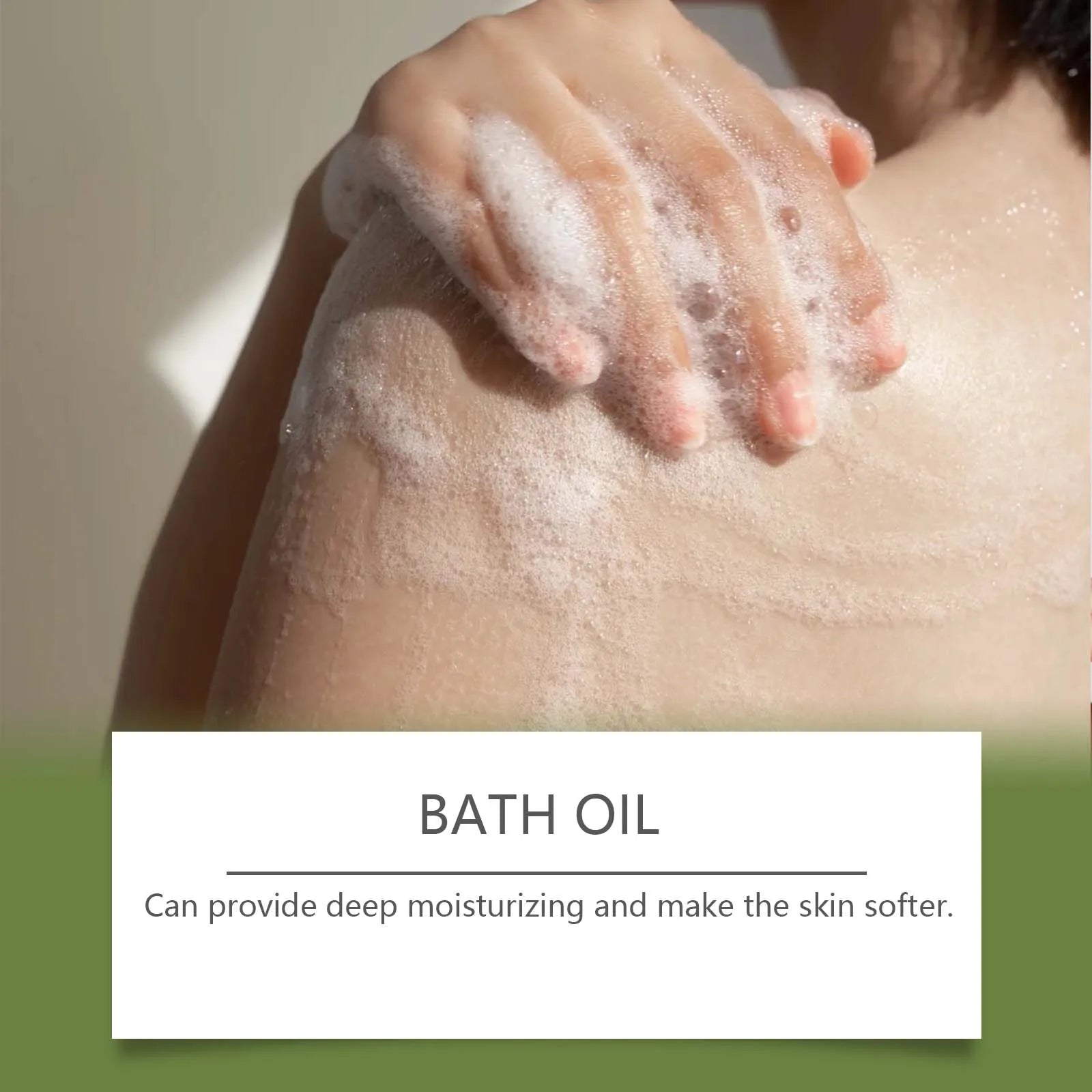 2. Take an appropriate amount of bath oil in the palm of your hand and apply it evenly on the skin of arms, legs and other body parts.