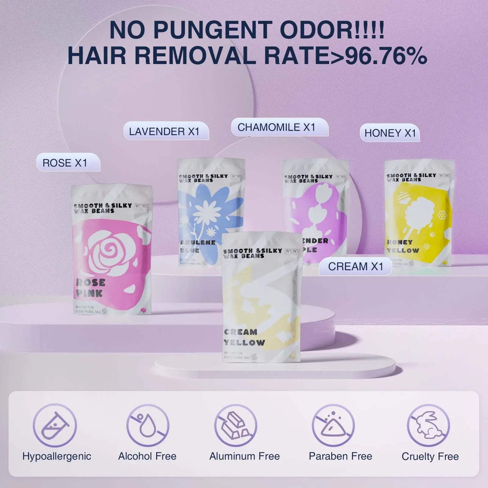 Achieve smooth, hair-free skin with WUWUVISTA's Wax Beads Kit! This 19 piece set includes: