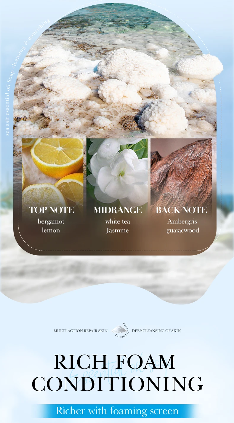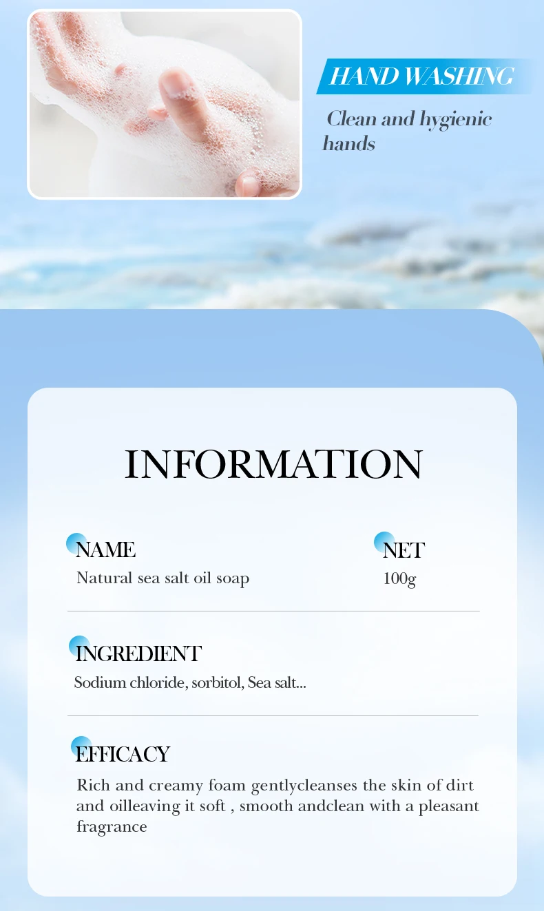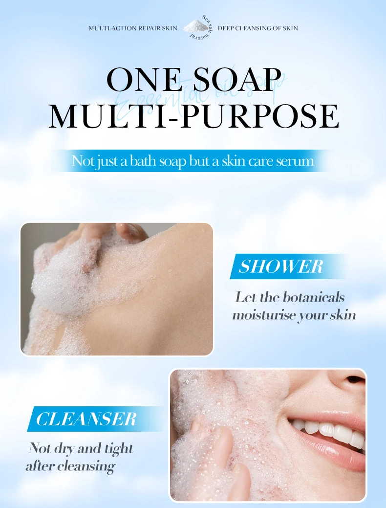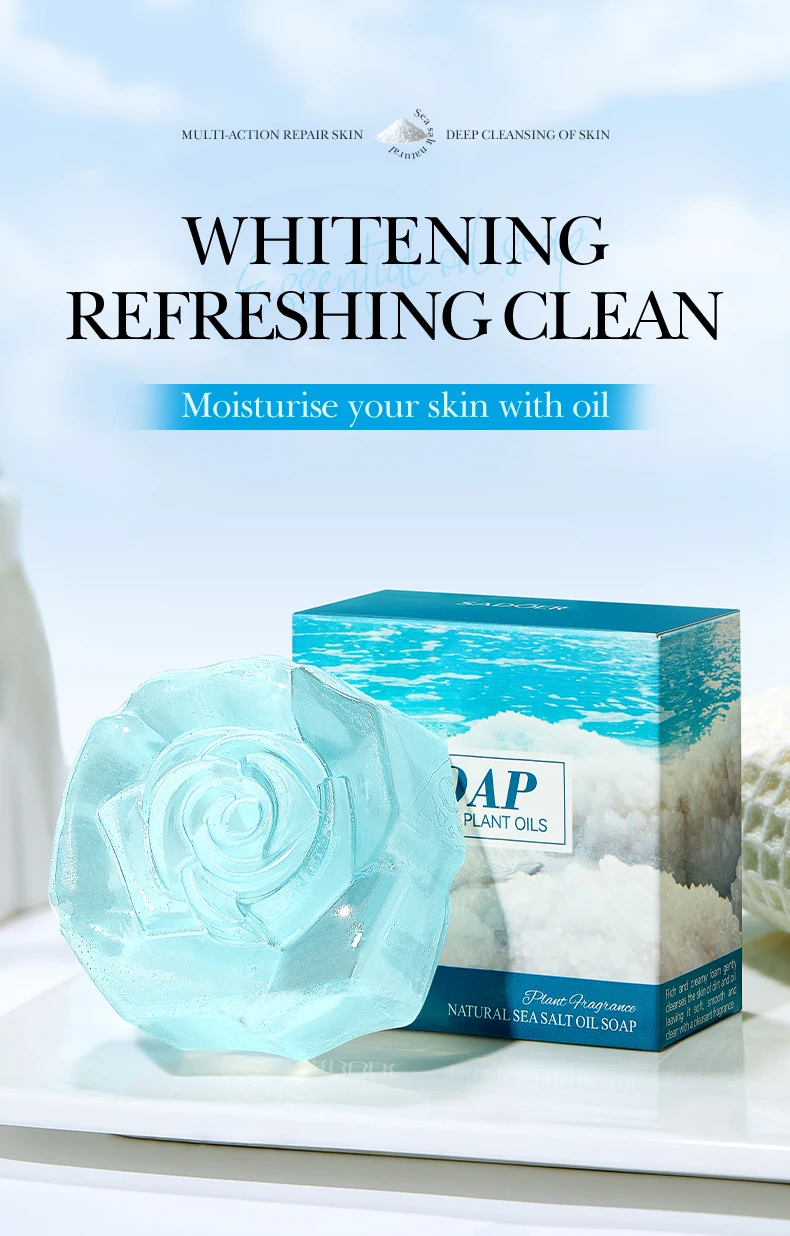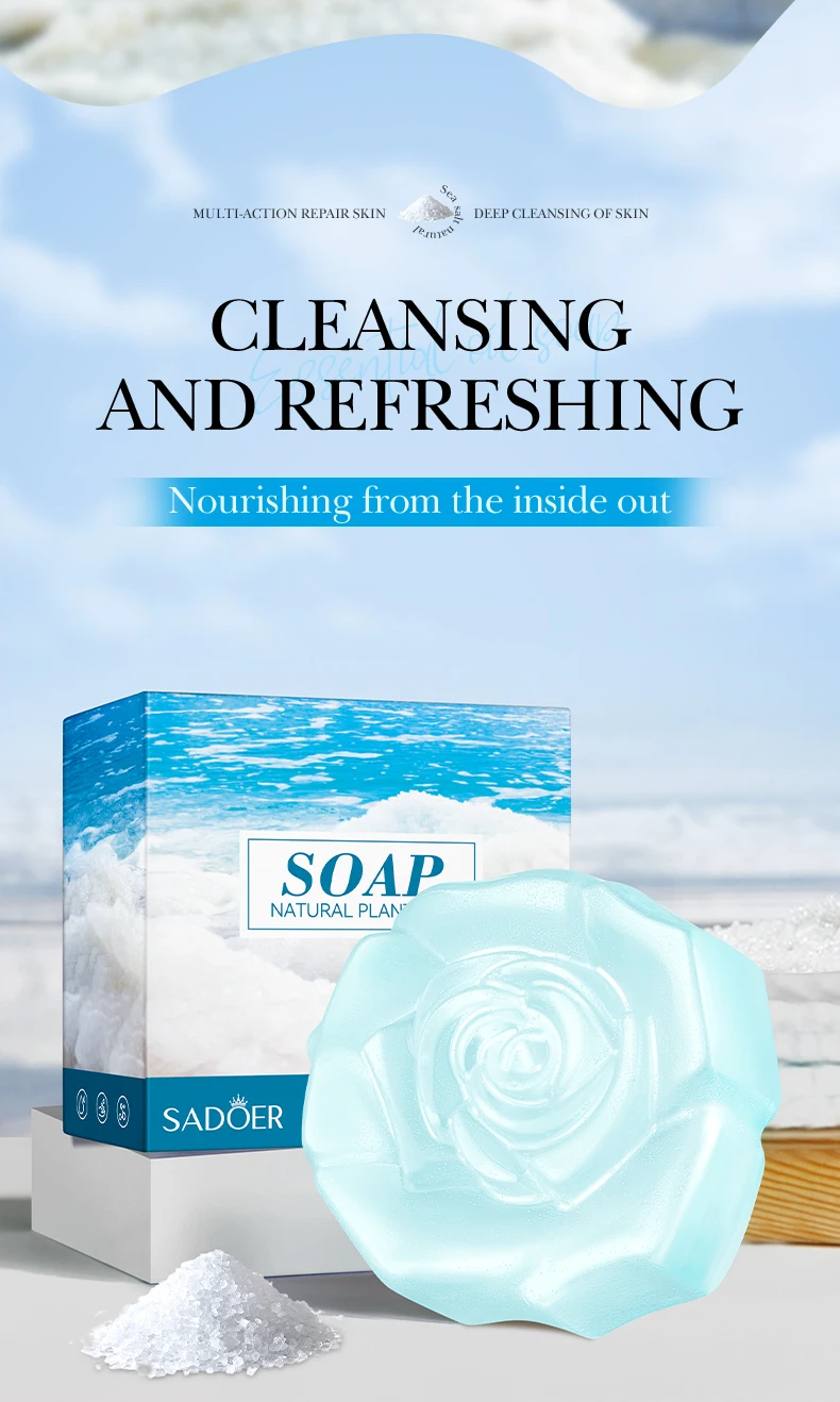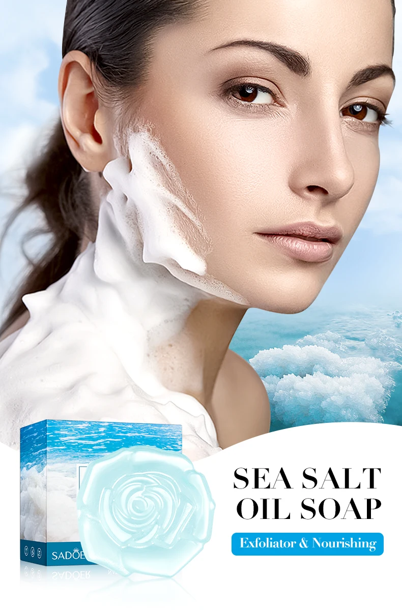 SADOER Sea Salt Essential Oil Soap Face Wash Foam Facial Cleanser Whitening Moisturizing Anti Acne Body Bathing Facial Soap