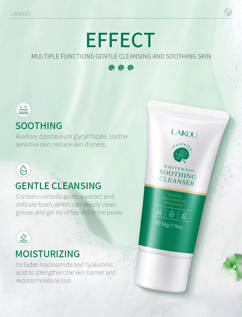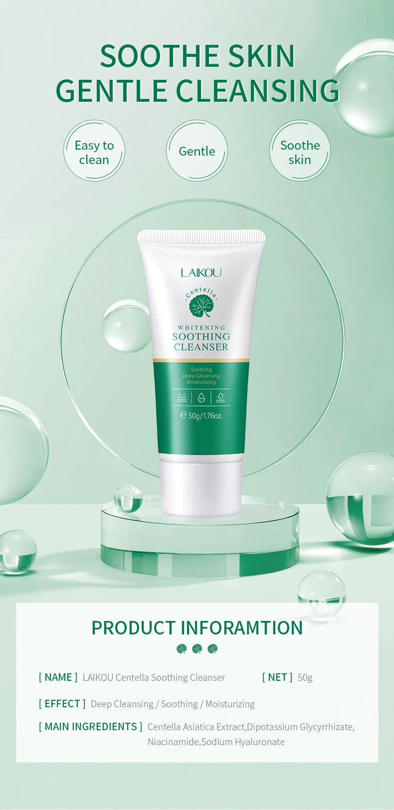 LAIKOU Centella Soothing Facial Cleanser Amino Acid BlackHead Remove Oil-Control Moisturizing Soften Face Skin Care Products