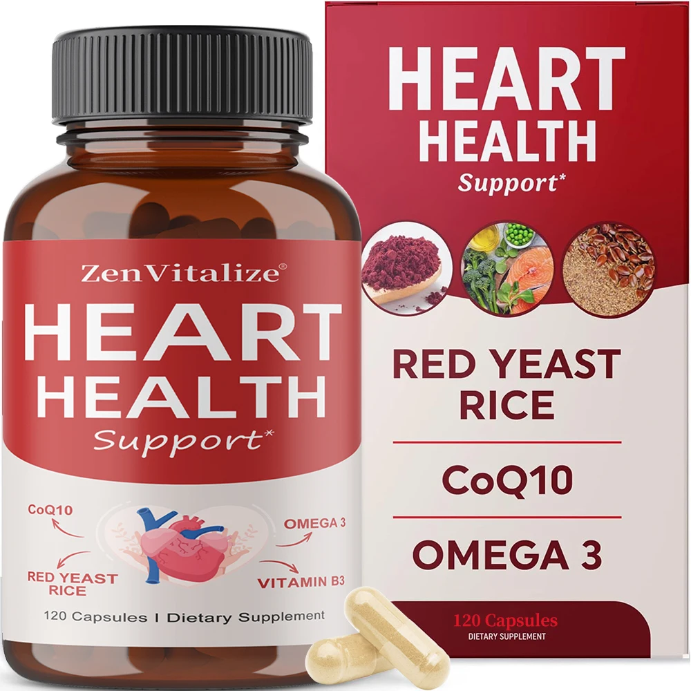 Heart Health Support Supplement - CoQ10, Omega 3, Red Yeast Rice, Vitamin B3, Promotes Healthy Cholesterol Levels - Non-GMO