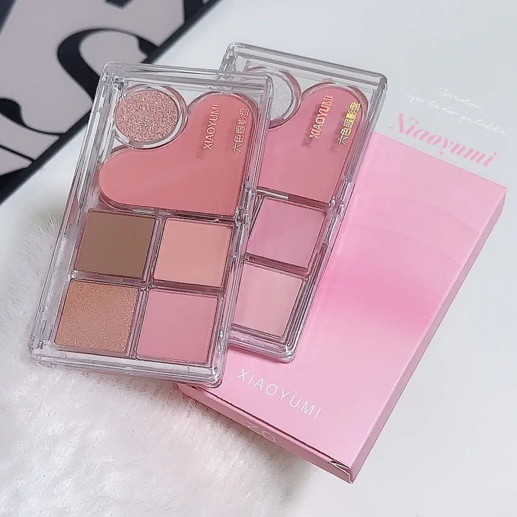 Six-color eyeshadow light shadow integrated eyeshadow palette, matte pearlescent pink, long-lasting makeup, pure desire