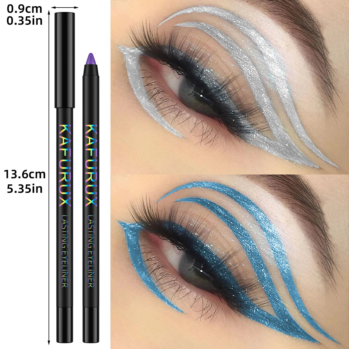 1pc Colourful Eyeliner Pen,High Pigmented Pearly Glitter&Shimmer Metallic Eyeliner Stick, Long Lasting Waterproof White Black
