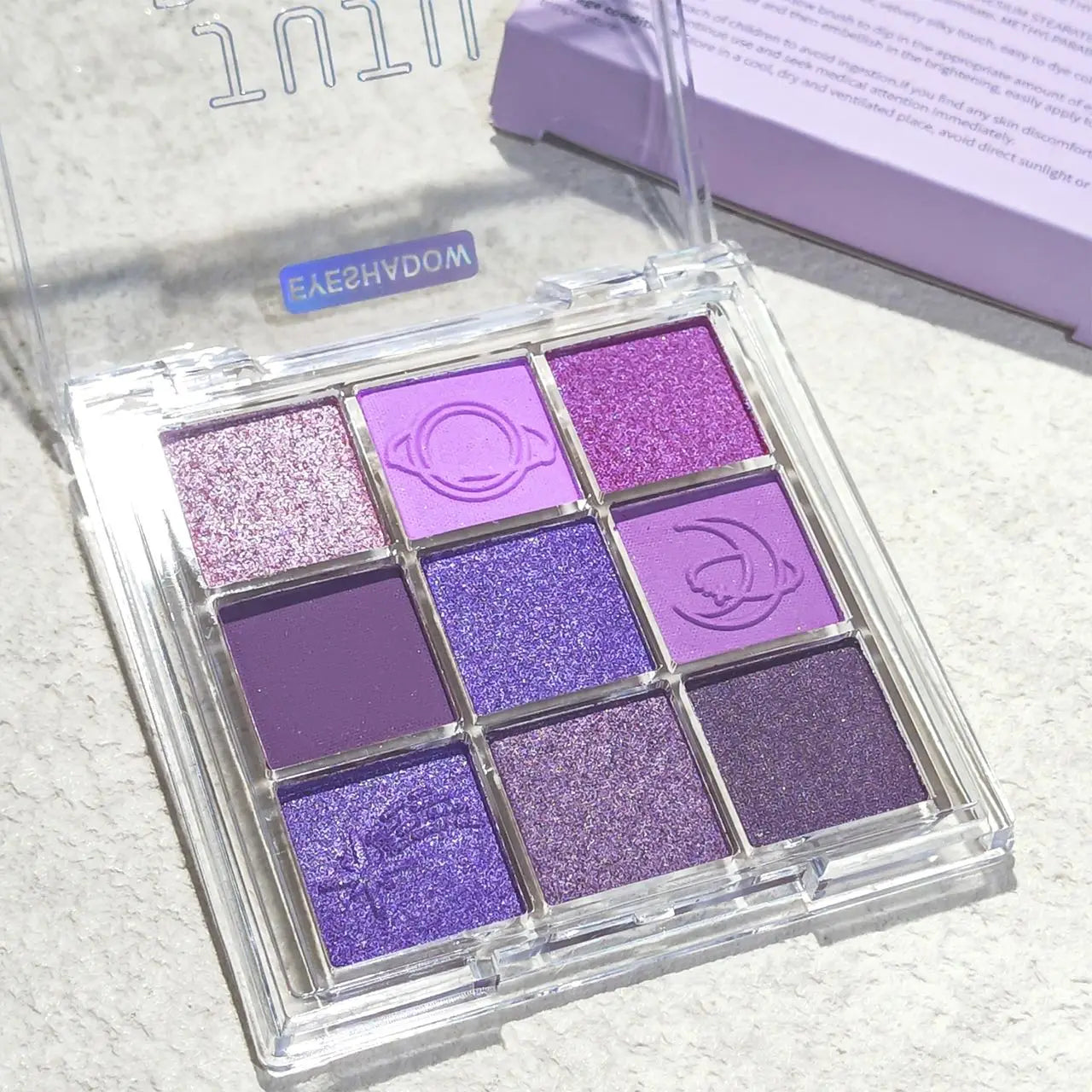 Purple tassel nine-color eyeshadow, smoked violet makeup, pearlescent matte, nine-square grid color eyeshadow palette