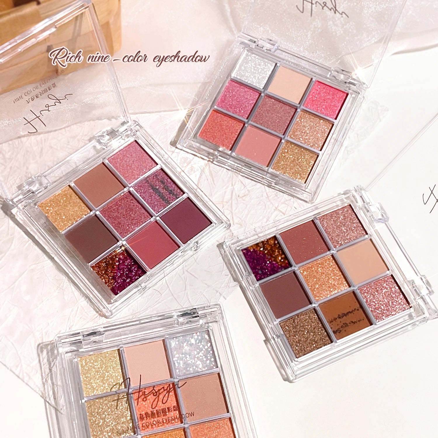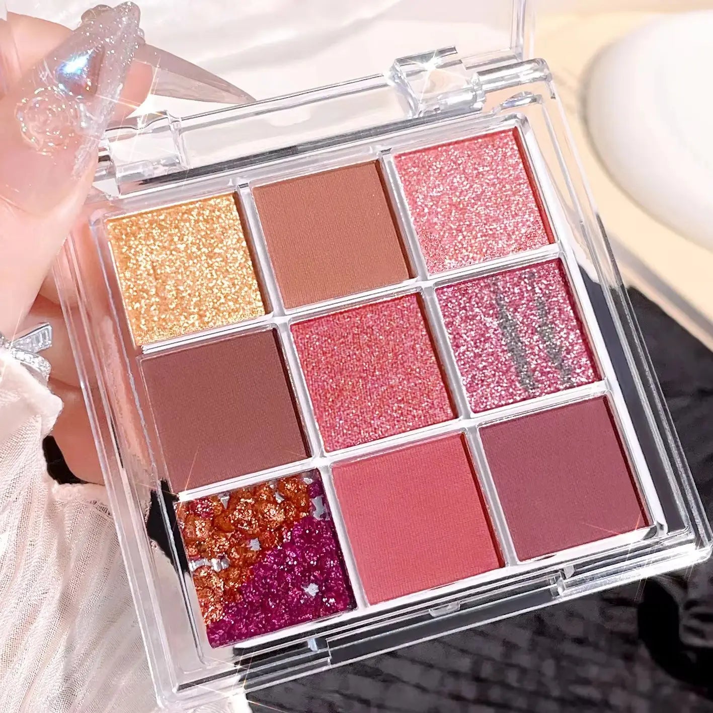 Summer 9 color eyeshadow palette: Orange brown, pink and gold, matte shimmer effect, lasting makeup, keep glitter rose Eyeshadow