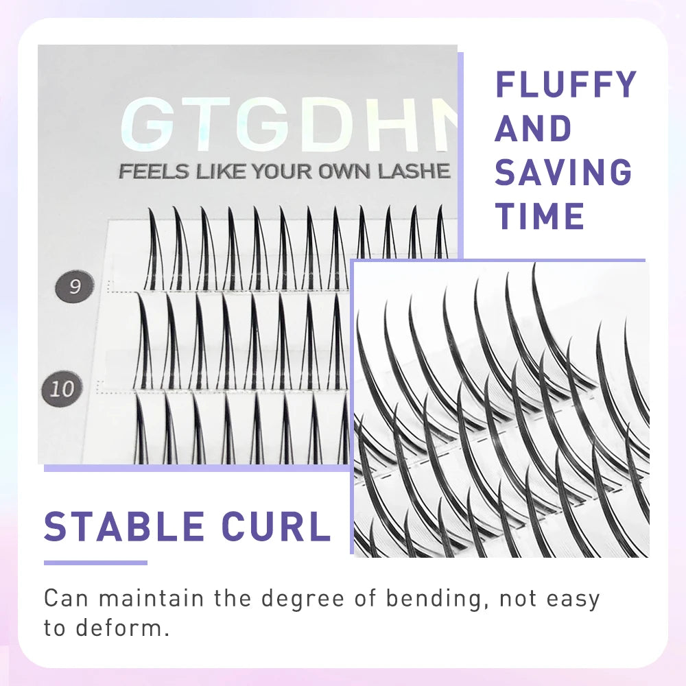 DIY A/M Shape Spikes Cluster Eyelash Extension Fish Tail Mix 3D Heat Bonded False Lashes Individual Makeup Natural Premade Fan