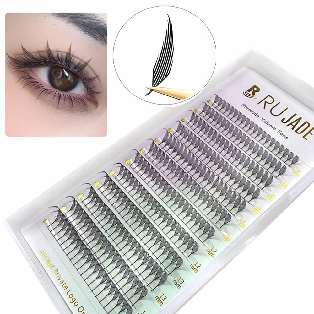 RUJADE Feather Shape Premade Fan Lashes Comic Spire Eyelashes Automatic Flowering Russian Volume Eyelash Extension Fairy Lashes