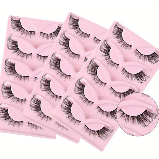 Fluffy False Eyelashes Eyelash Extensions, 10 Pairs Wispy Cat-Eye Look Faux Lashes, Natural Look Eyelash Extensions, Volumized F