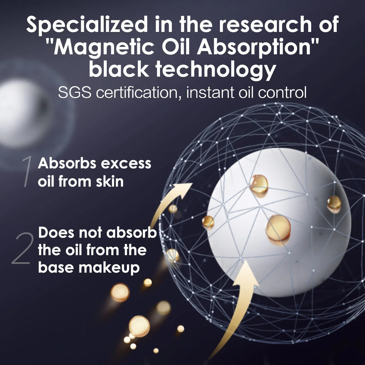 【Exclusive ''Magnetic Oil Control'' Technology 】SGS authoritative certification.Long lasting directional oil.Absorbs excess oil from the skin,Precise oil control, long-lasting keeps makeup control. Not absorb moisturizing oils from the bottom of the skin, Protects the base makeup intact without drying it out.