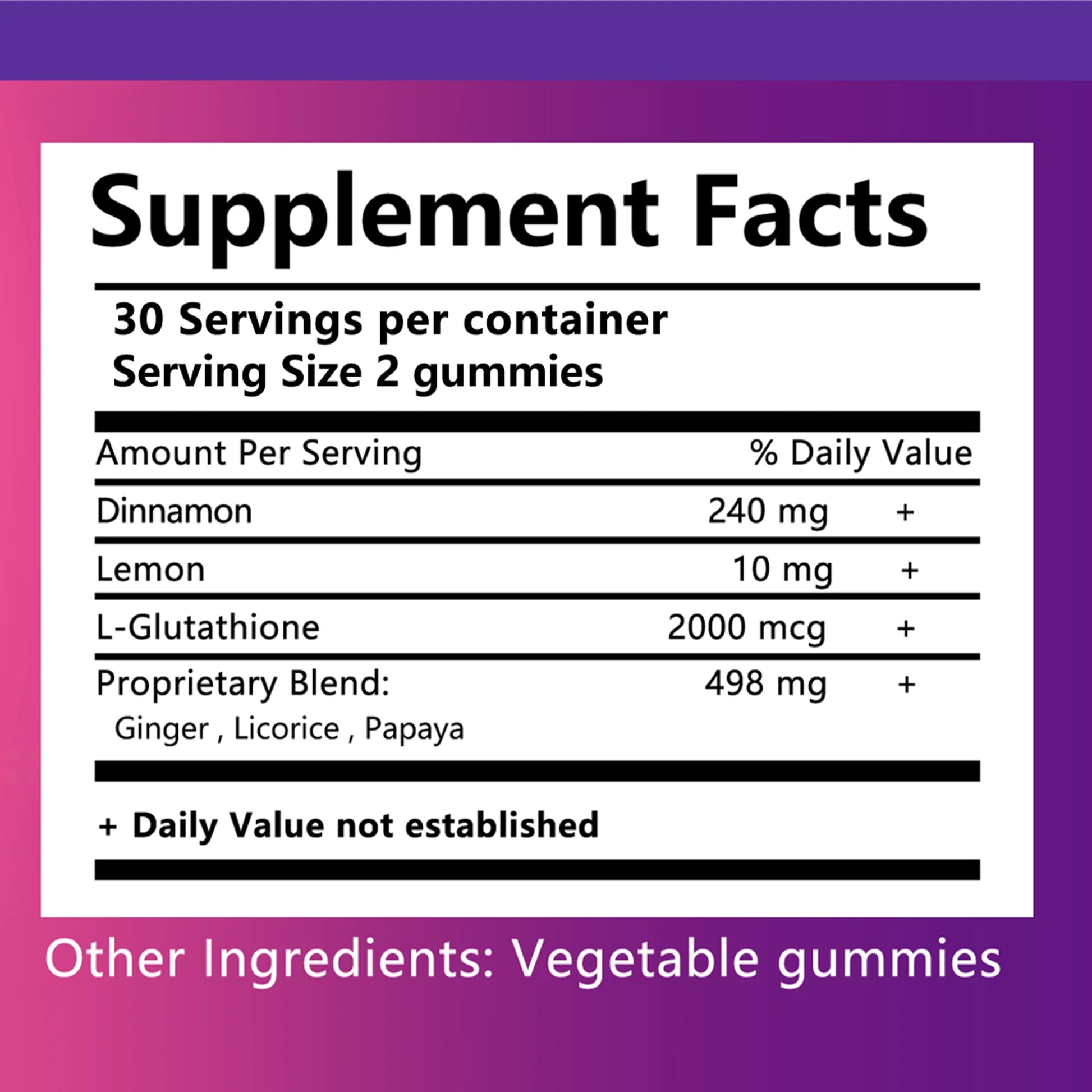 Ingredients: Dinnamon, Lemon, L-Glutathione
