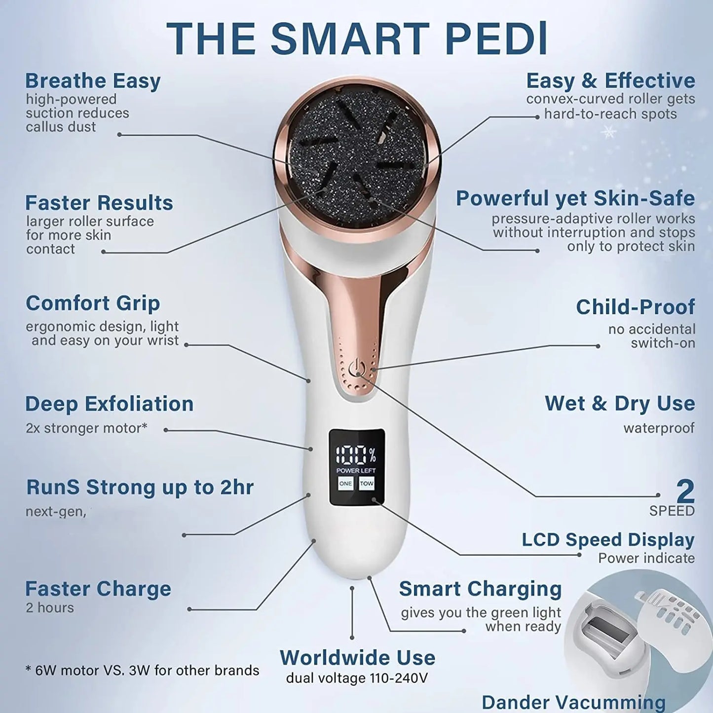 Main functions: 1. Remove dead skin calluses and keratin. 2. Vacuuming, dander collection.