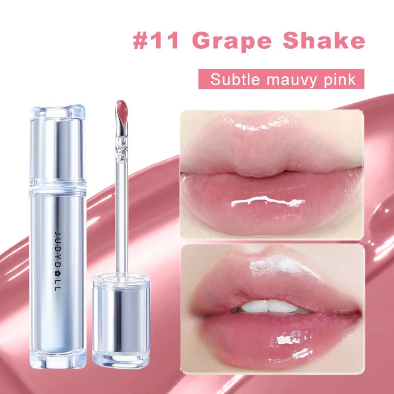 Judydoll Watery Lip Gloss-Hydrating Lip Essence Glossy Mirror Lip Gloss, Non-Stick Cup, Suitable for Self-Use, Gifting, Beginners