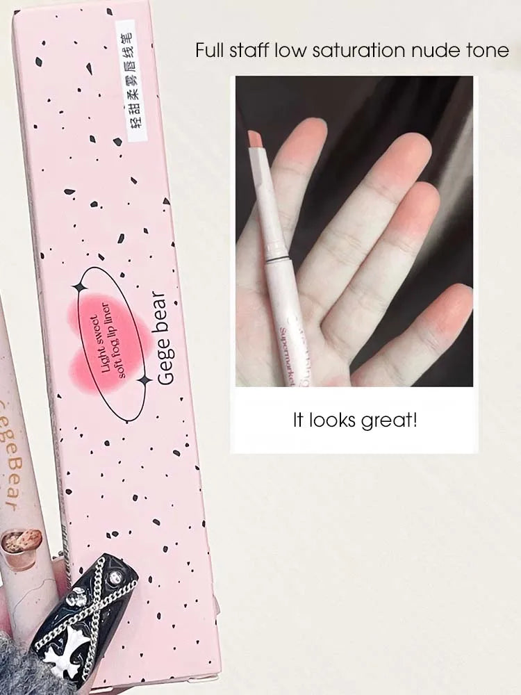 Light sweet and soft fog lipliner outlines the lip shape, lasting, not easy to fade, not take off makeup, nude pink lip liner
