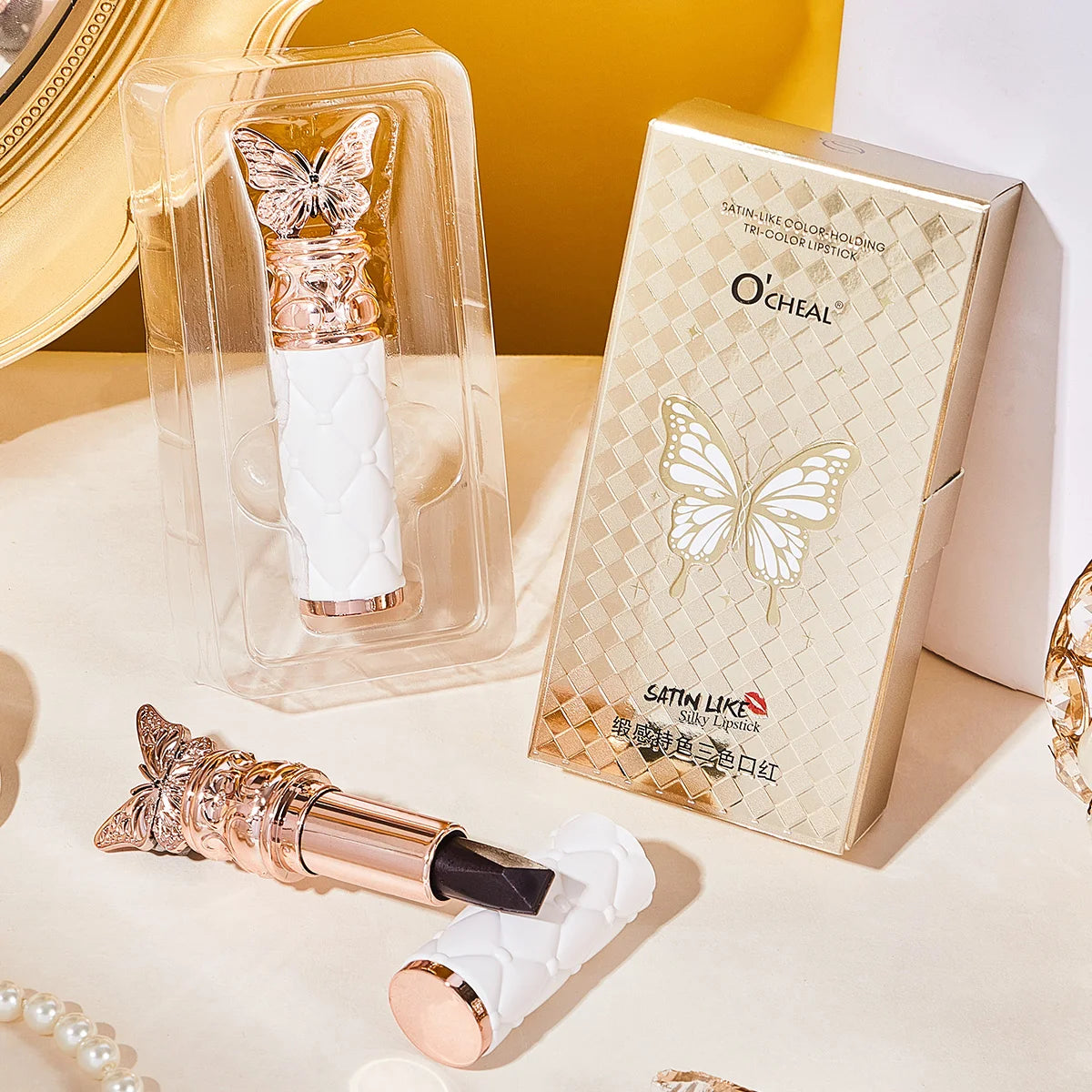 Items: Ocheal Satin-Like Color-Holding Tri-Color Lipstick