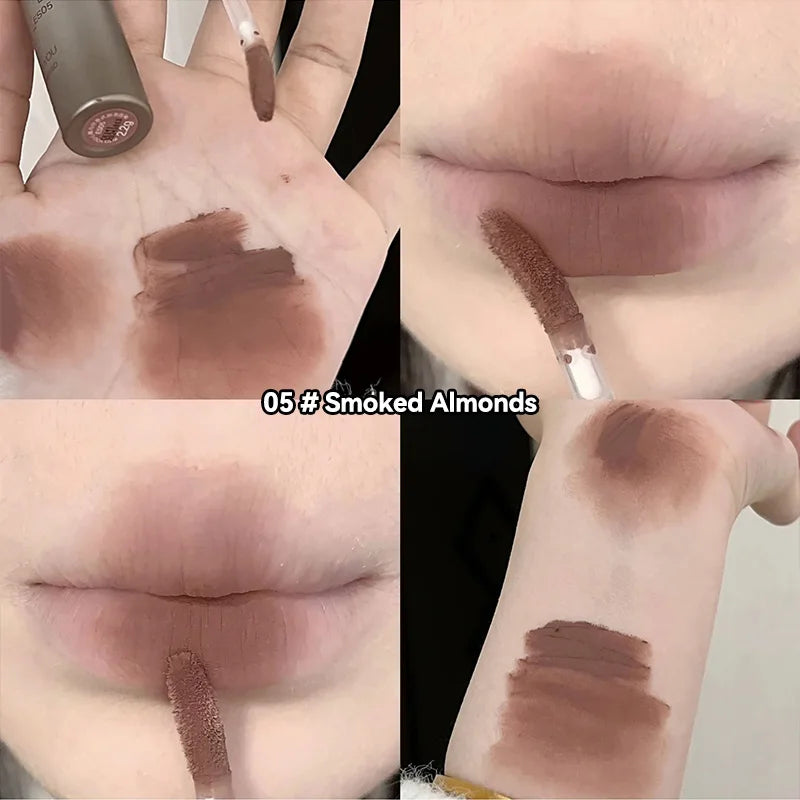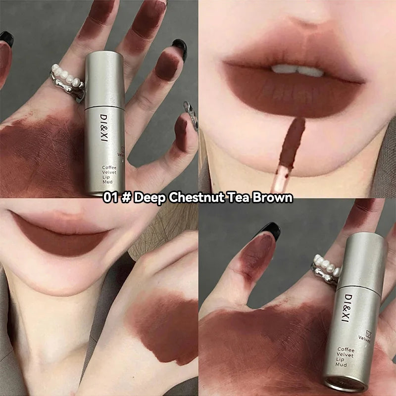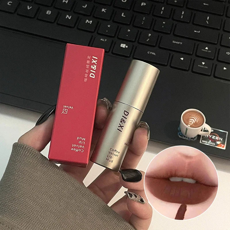 DIXI Mini Silver Tube Matte Lip Glaze — Velvet Finish, Skin-Enhancing, Versatile Low-Saturation Latte Shade