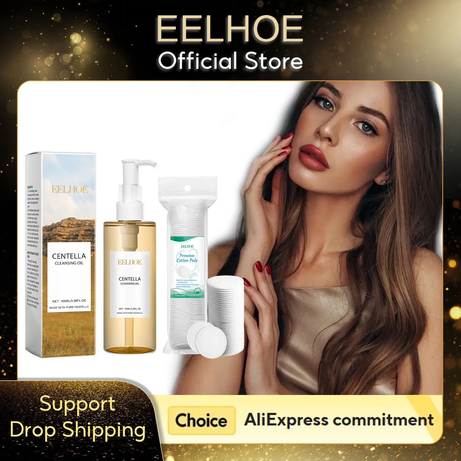 EELHOE Moisturizing Facial Cleansing Oil Centella Skin Care Fresh Smooth Pore Cleaning Makeup Remover Pads Makeup Tools and Accessories 100ml and 100pcs