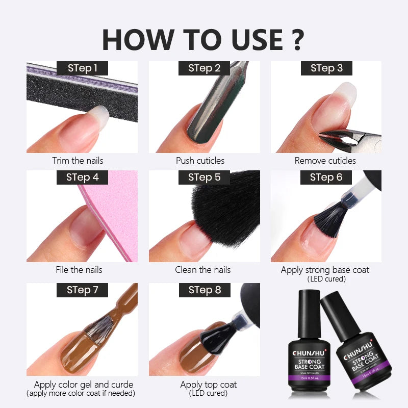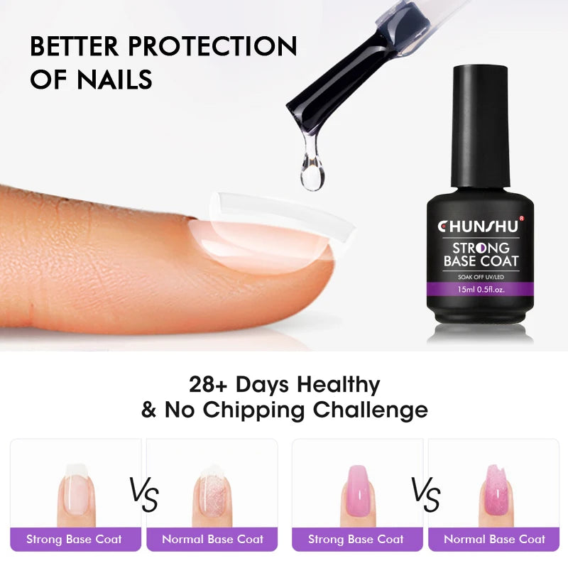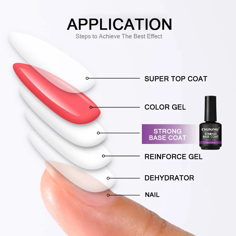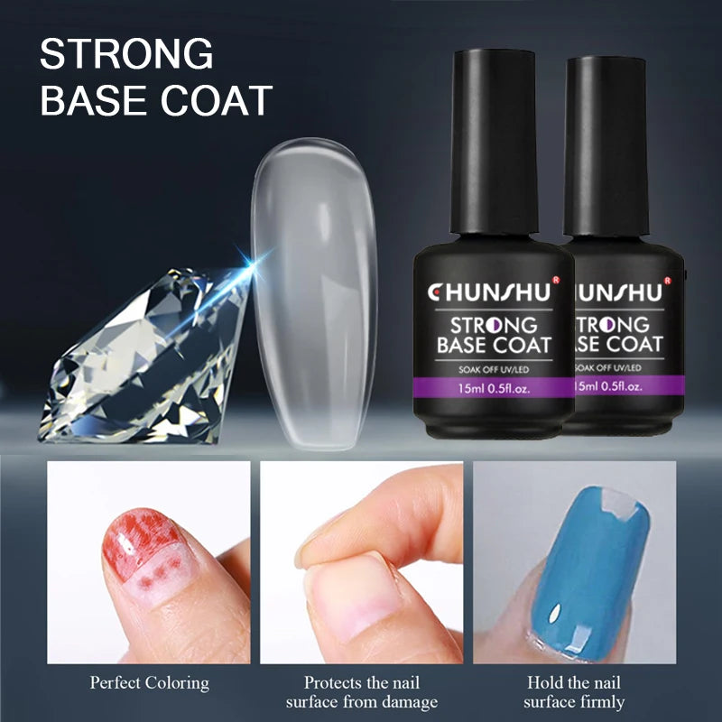 CHUNSHU 15ML Strong Base Coat For Manicure Hybrid Nail Art Long Lasting Transparent Base Gel Semi Permanent Reinforcement