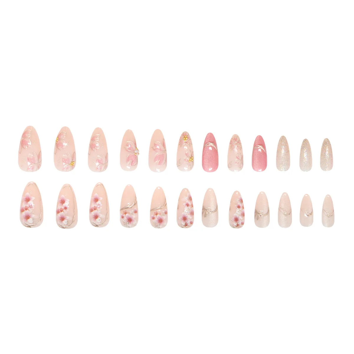 24pcs Pink Almond Press on Nails Flower Pattern False Nails Wearable Stick-on Nails Fake Nail Uñas Postizas Накладные Ногти 네일팁