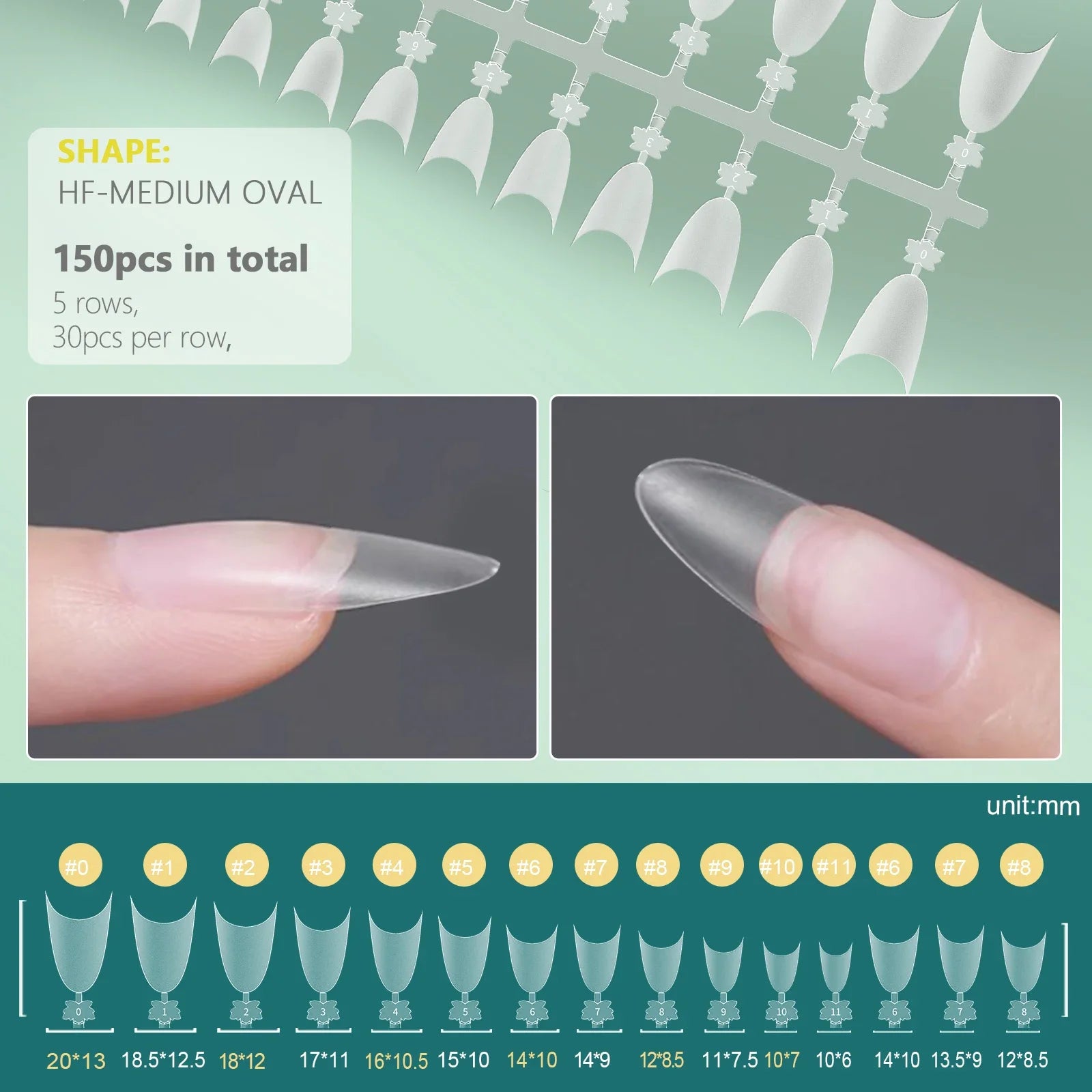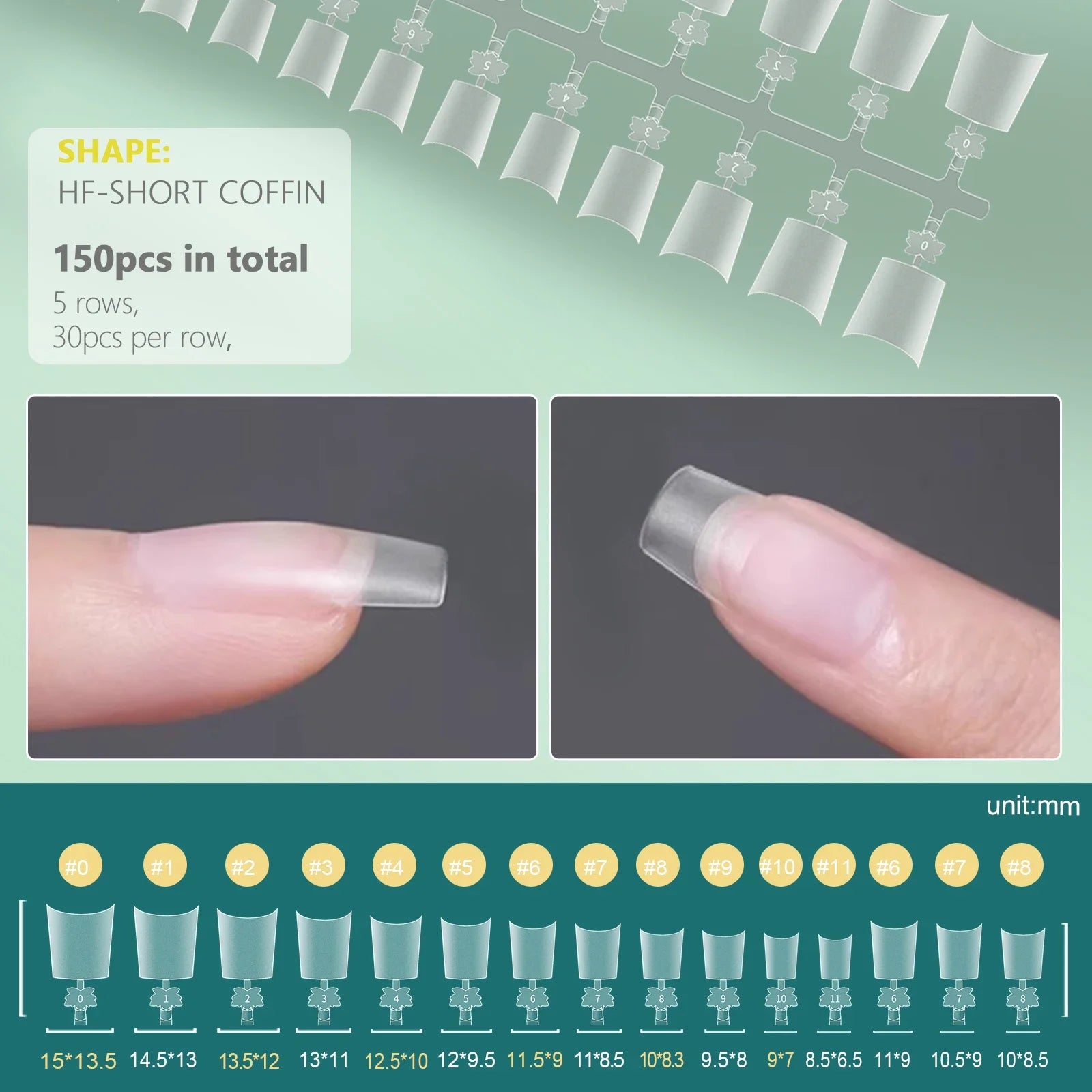 NAILPOP 150pcs Half Cover Short Fake Nail Tips Full Cover 15 Sizes for Nail Extension No C Curve False Nails Art Home DIY Salon
