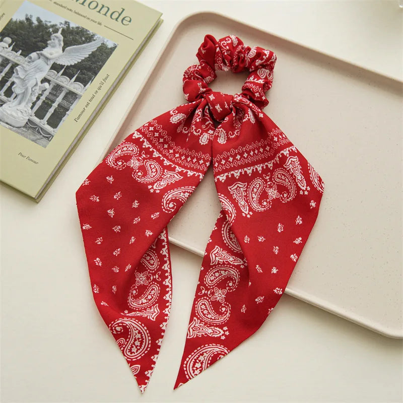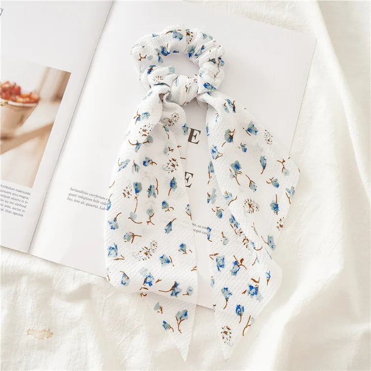 2023 Fashion Print Chiffon Long Ribbon Scrunchies Women Girls Ponytail Scarf Elastic Hair Bands Ties Hair Accessories Wholesale