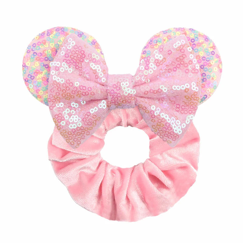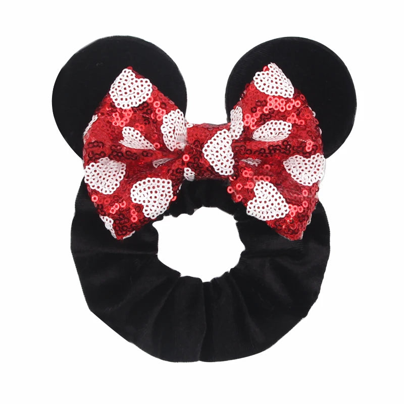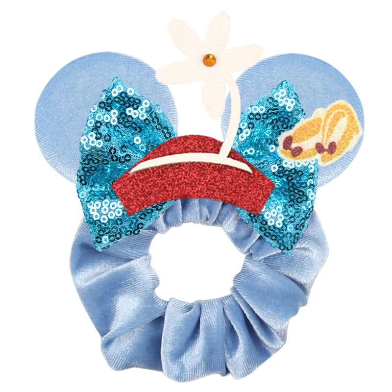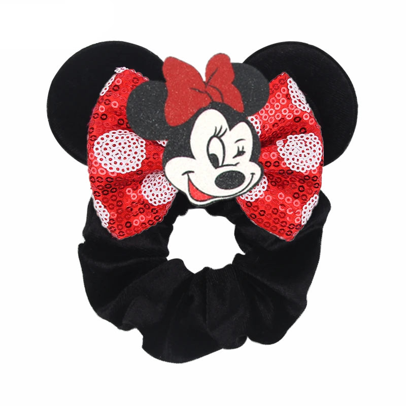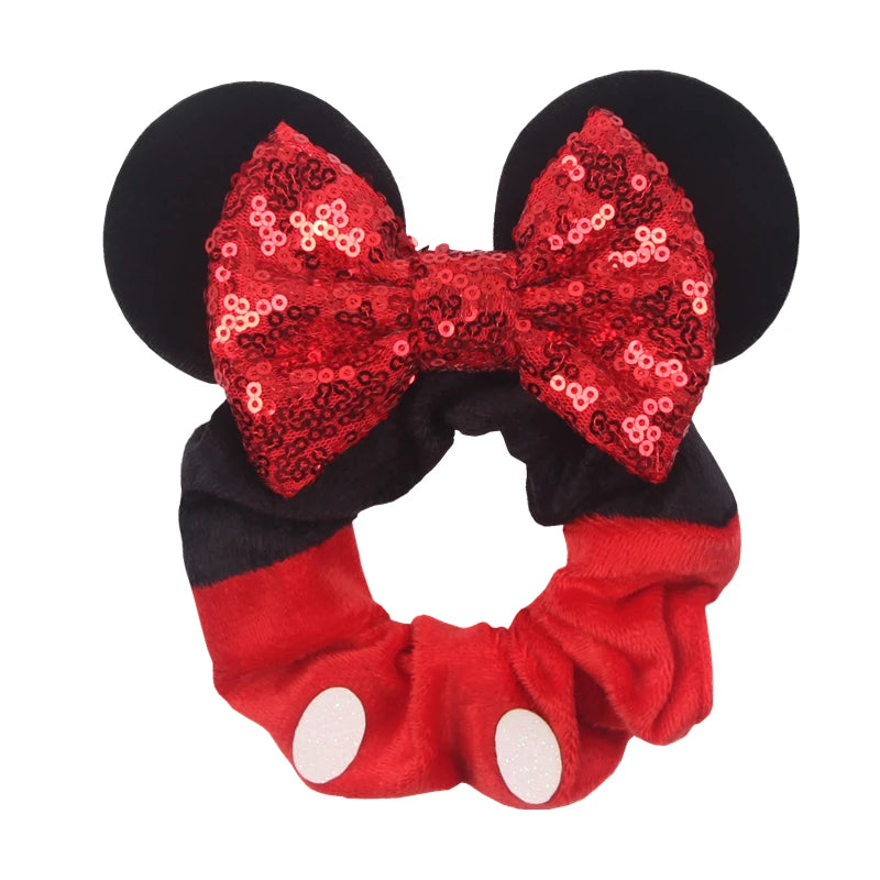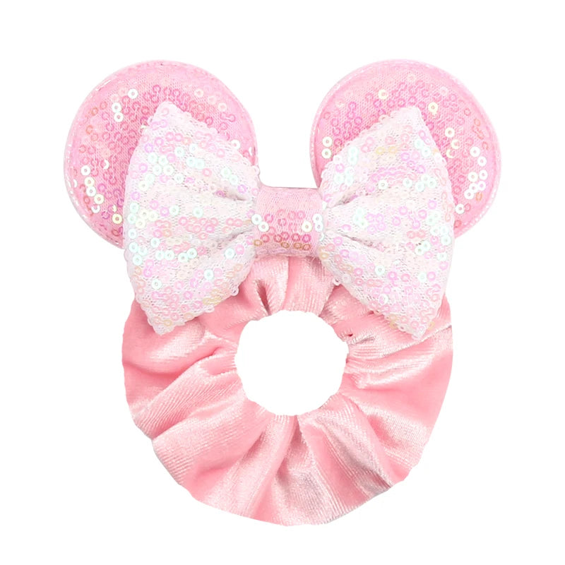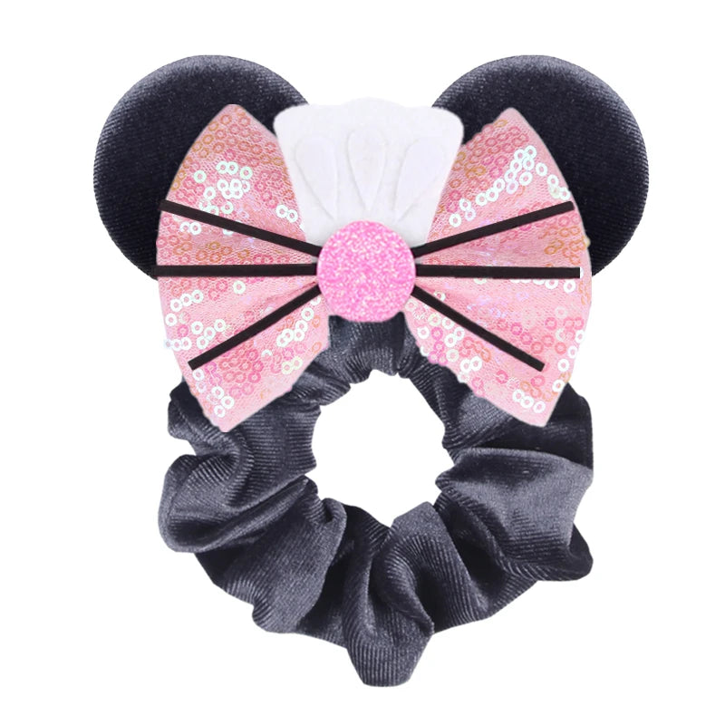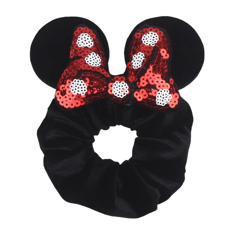Disney Mouse Ears Velvet Scrunchies Hairband Women Elastic Ponytail Holder Girls Sequin Bow 2023 Kids Party DIY Hair Accessories