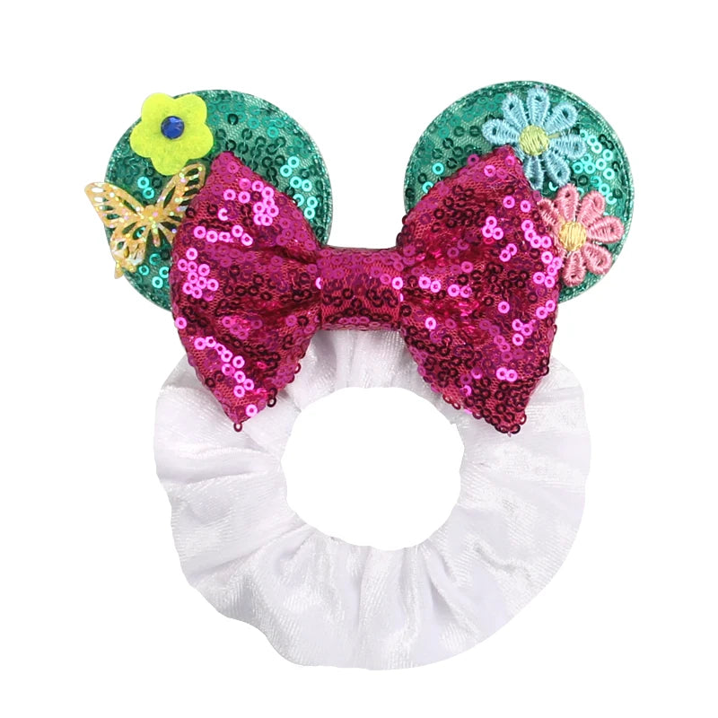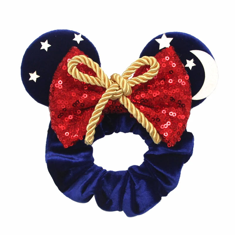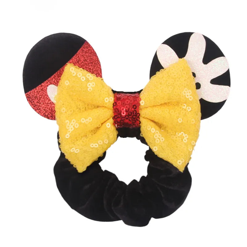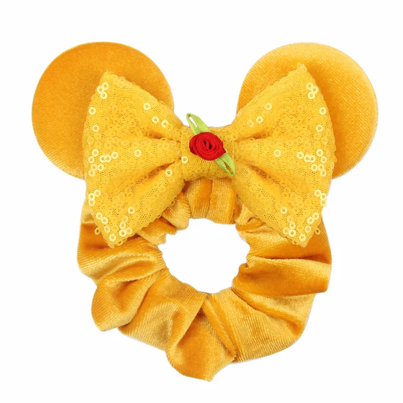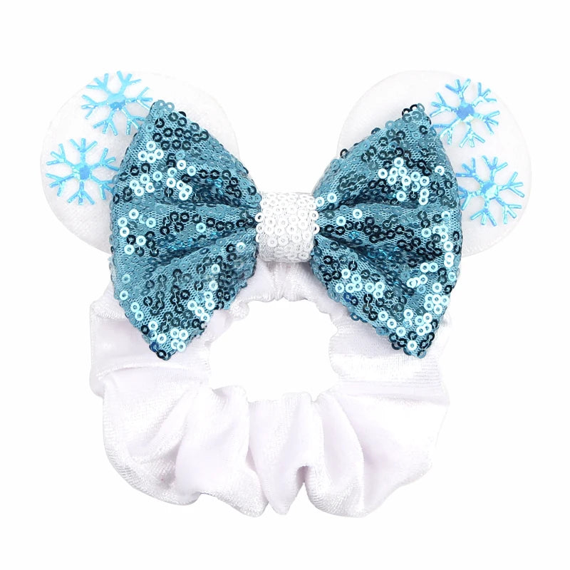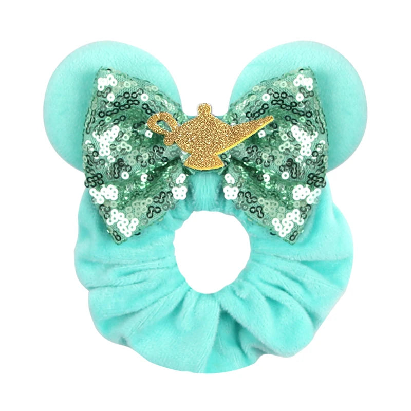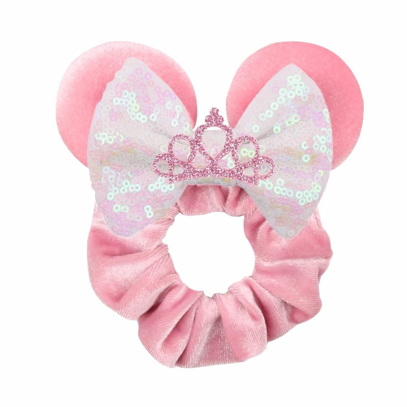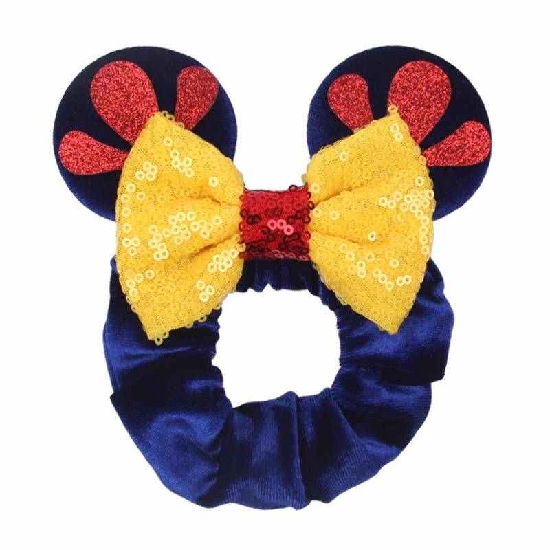 Disney Mouse Ears Velvet Scrunchies Hairband Women Elastic Ponytail Holder Girls Sequin Bow 2023 Kids Party DIY Hair Accessories