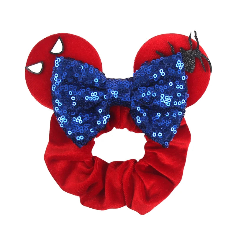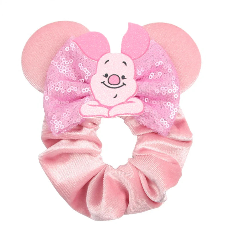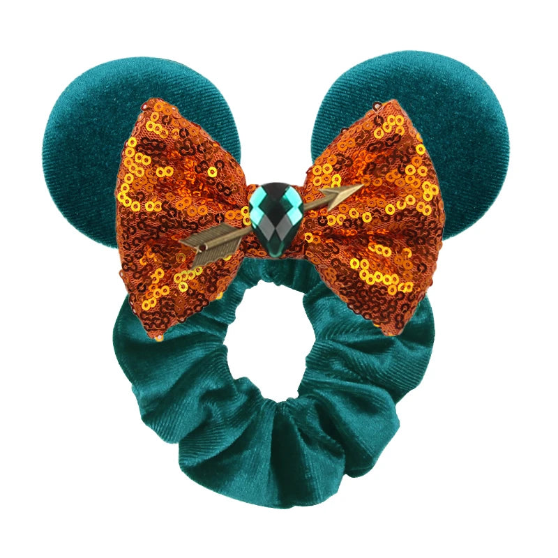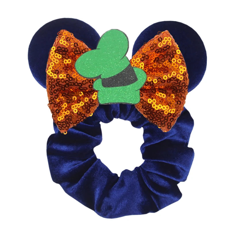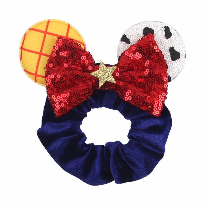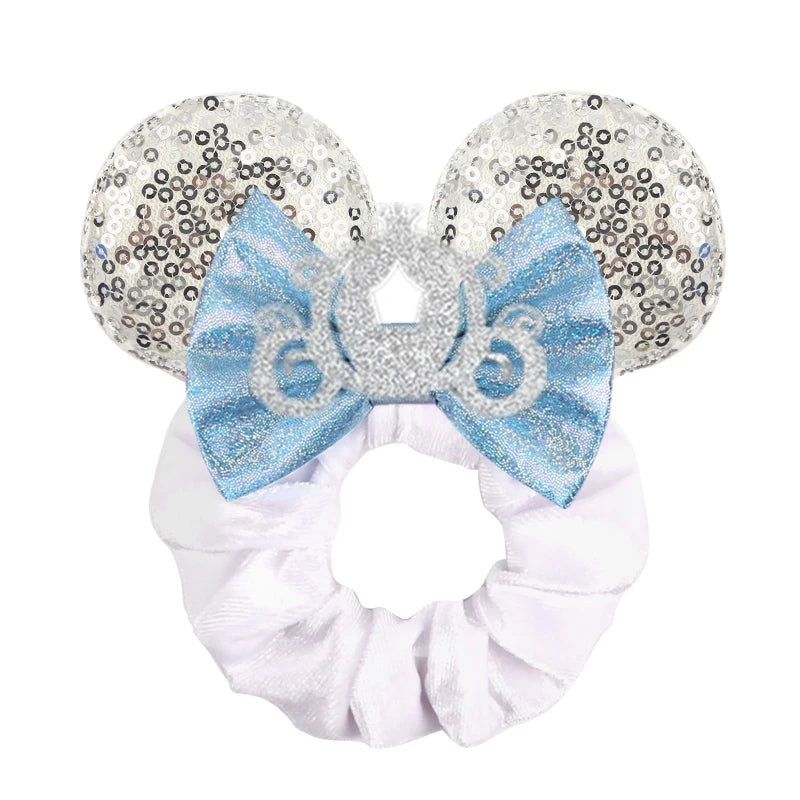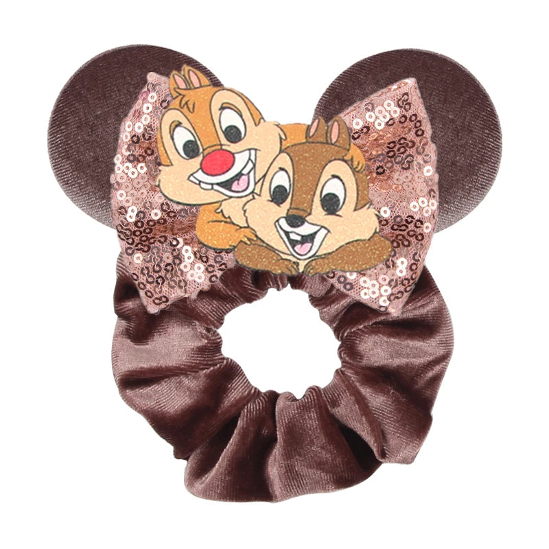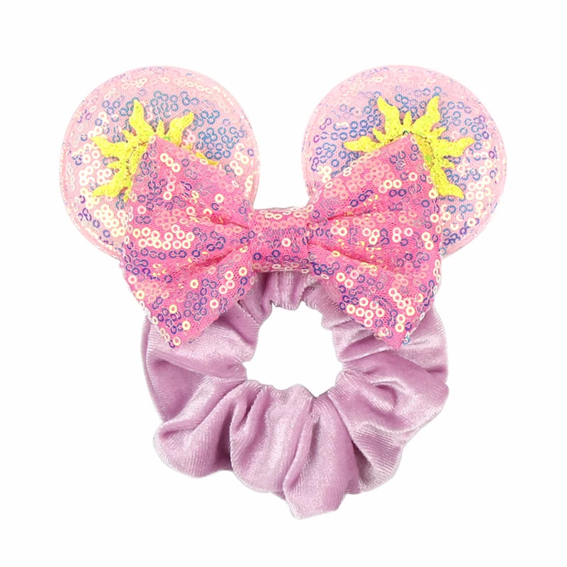 Disney Mouse Ears Velvet Scrunchies Hairband Women Elastic Ponytail Holder Girls Sequin Bow 2023 Kids Party DIY Hair Accessories