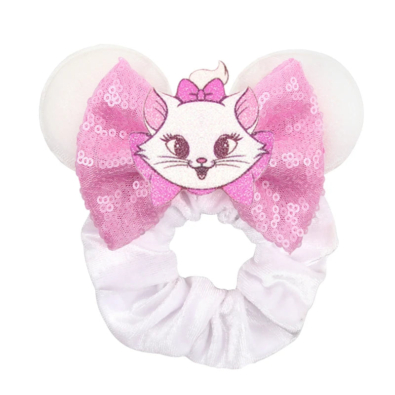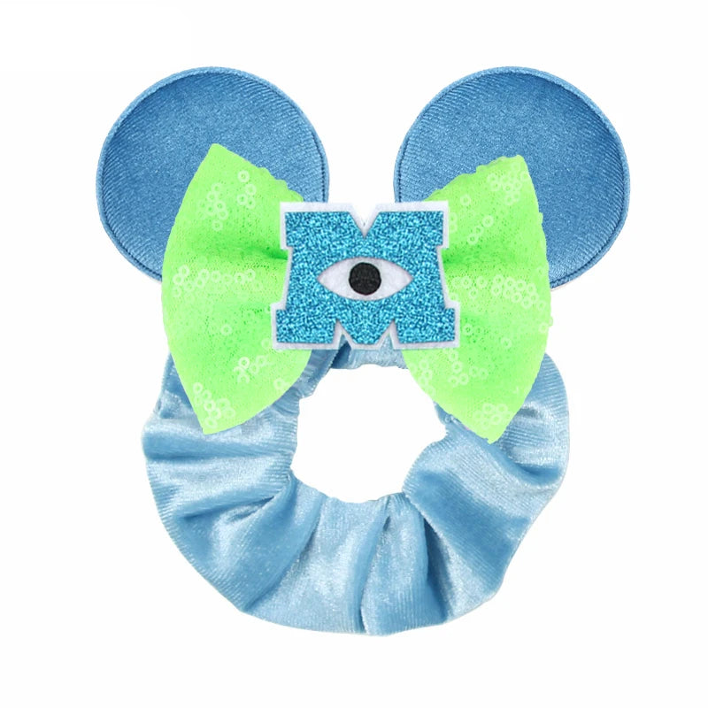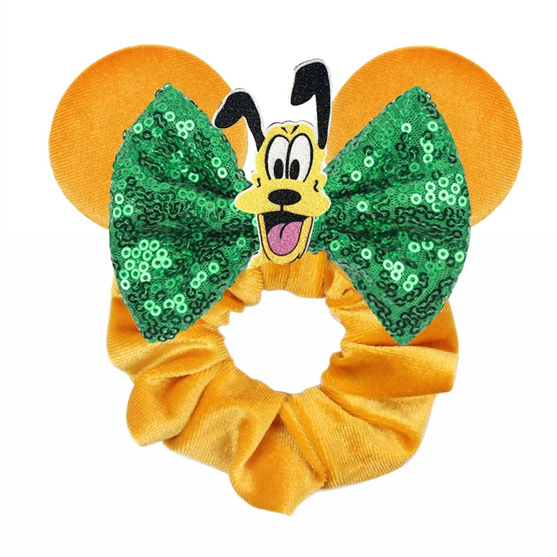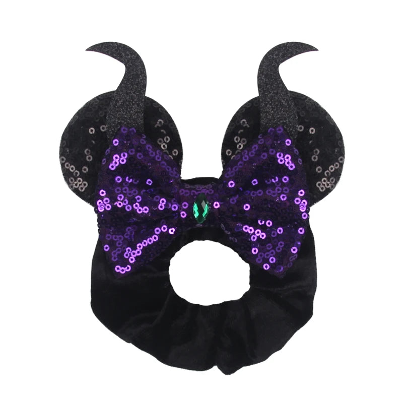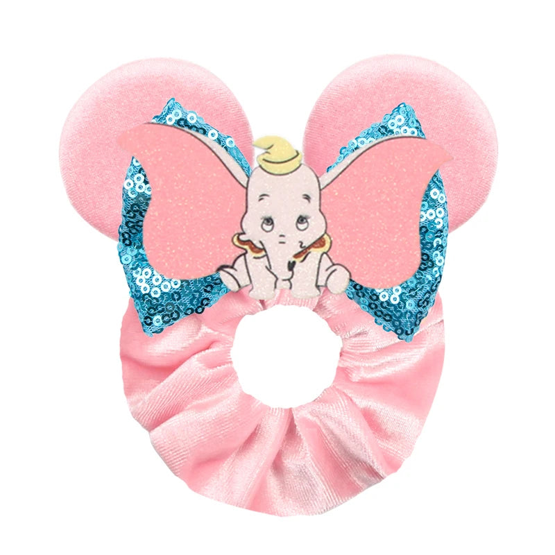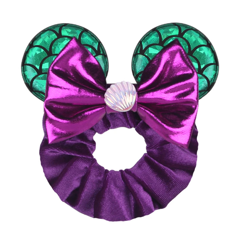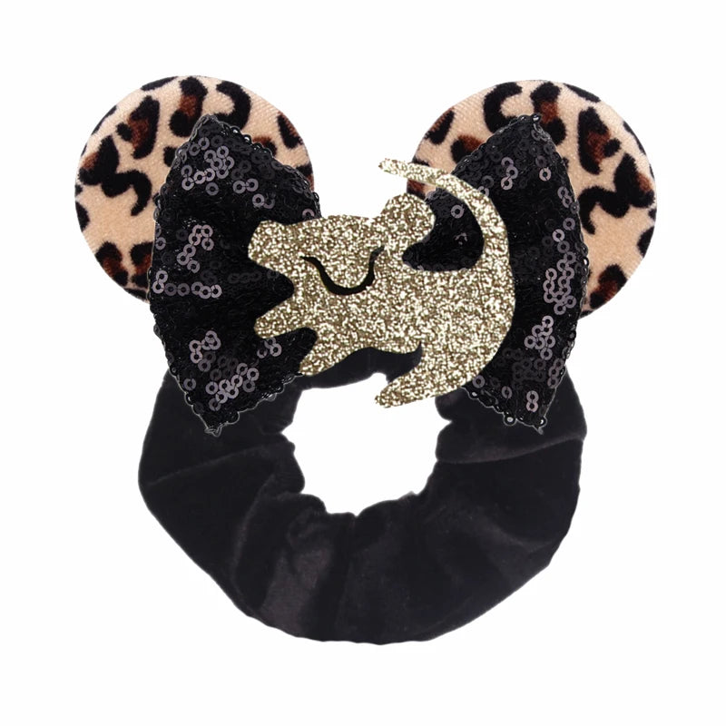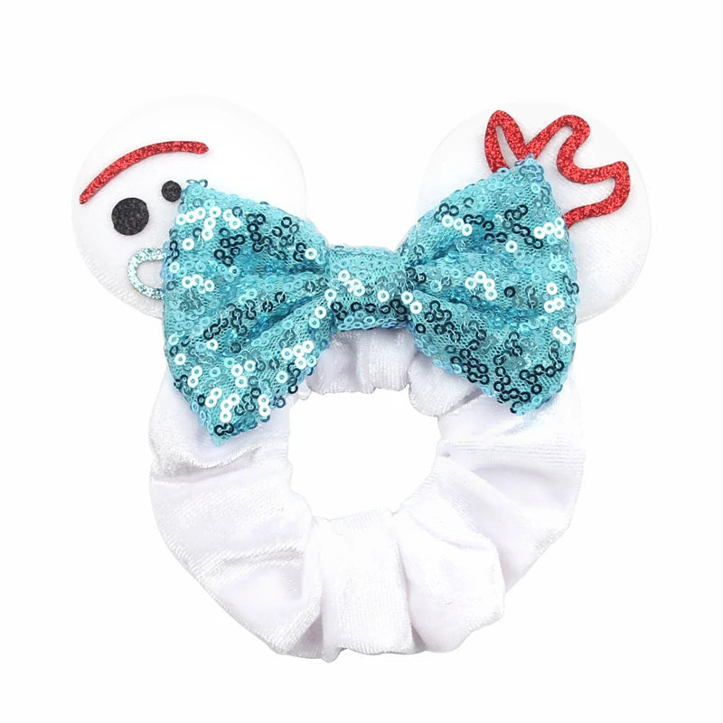Disney Mouse Ears Velvet Scrunchies Hairband Women Elastic Ponytail Holder Girls Sequin Bow 2023 Kids Party DIY Hair Accessories