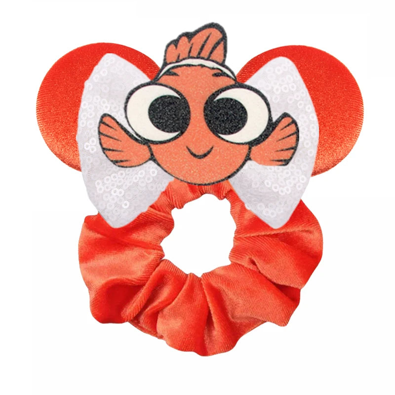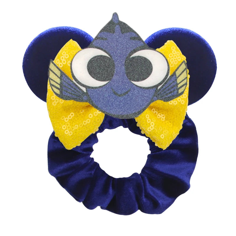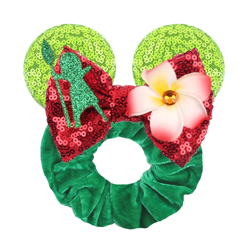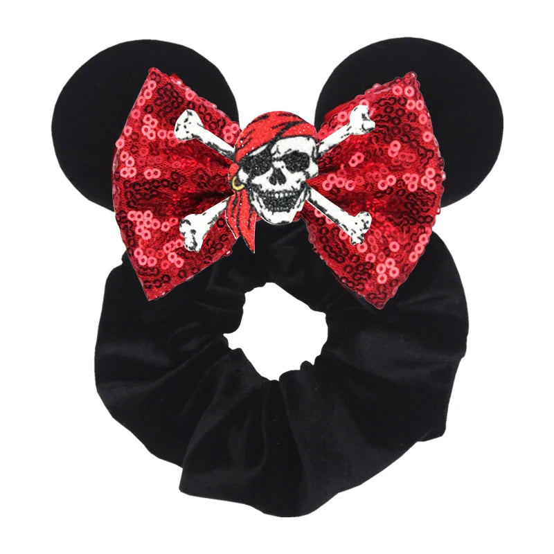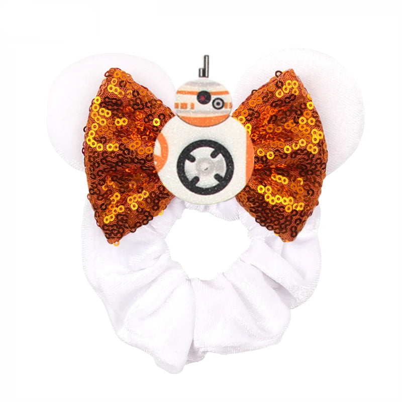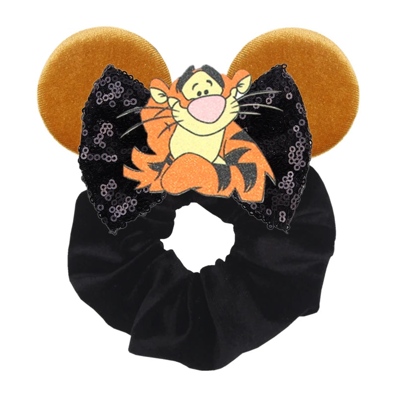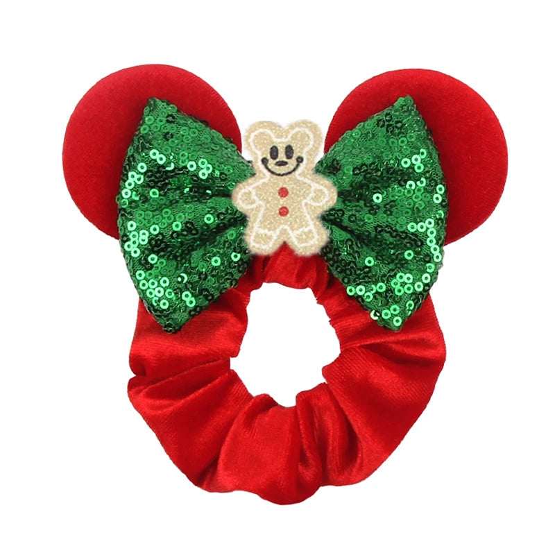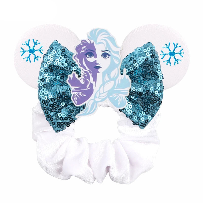 Disney Mouse Ears Velvet Scrunchies Hairband Women Elastic Ponytail Holder Girls Sequin Bow 2023 Kids Party DIY Hair Accessories