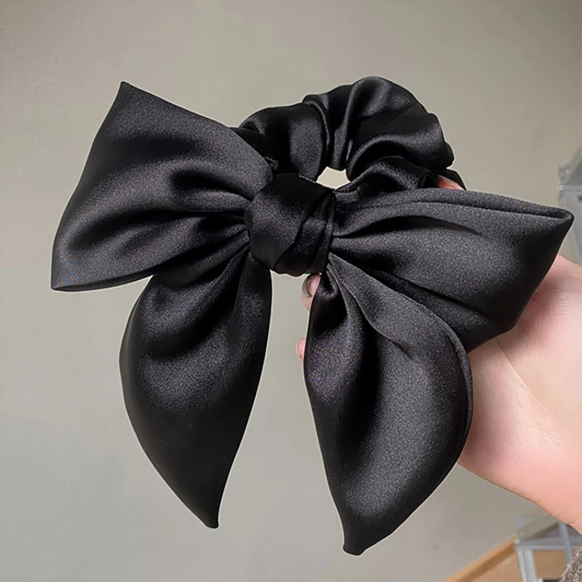 Elegant Bow Ribbon Hair Band Women Hair Tie Girls Solid Satin Bowknot Scrunchies Ponytail Large Rubber Bands Hair Accessories