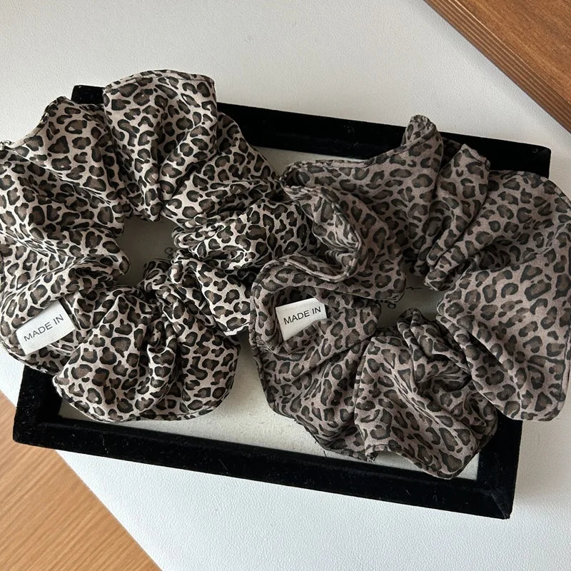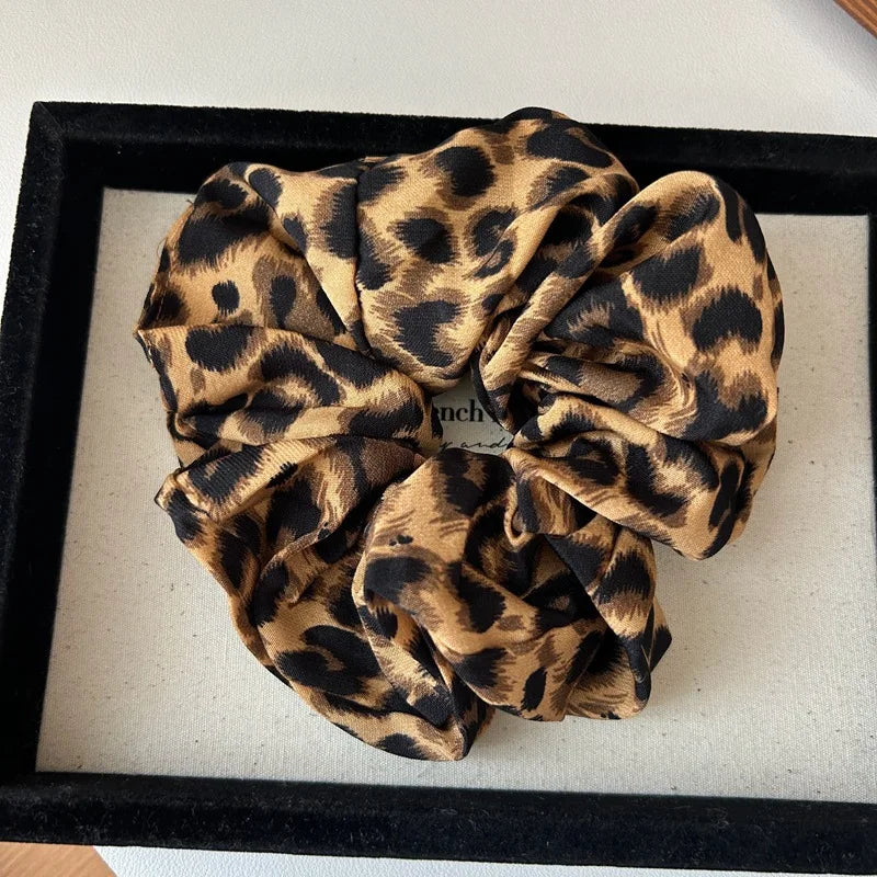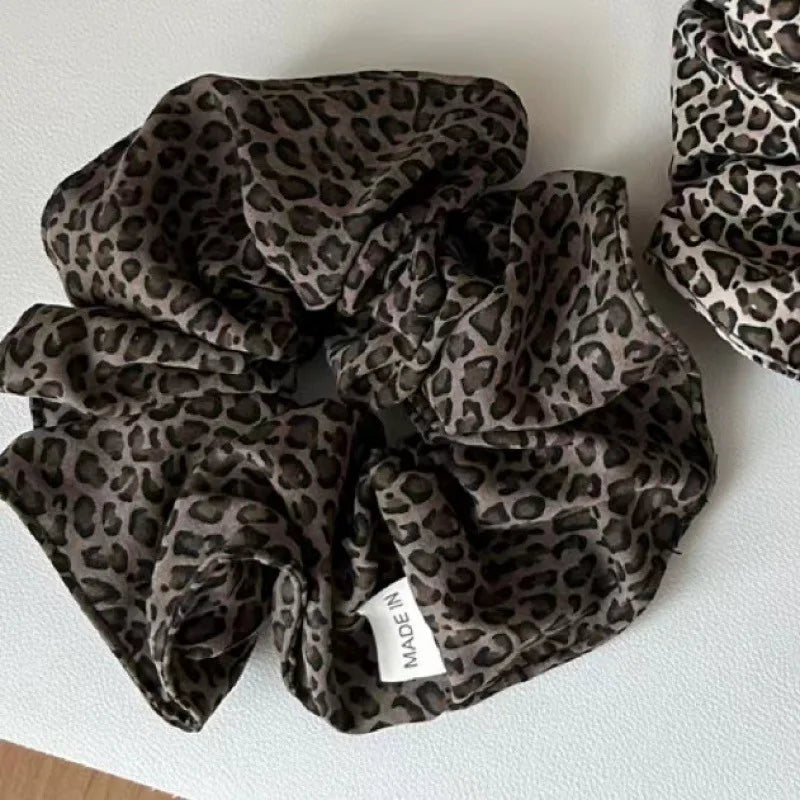 korea fashion Leopard print oversized scrunchie for women elastic big hair tie girls black hair rubber bands Retro hair rope