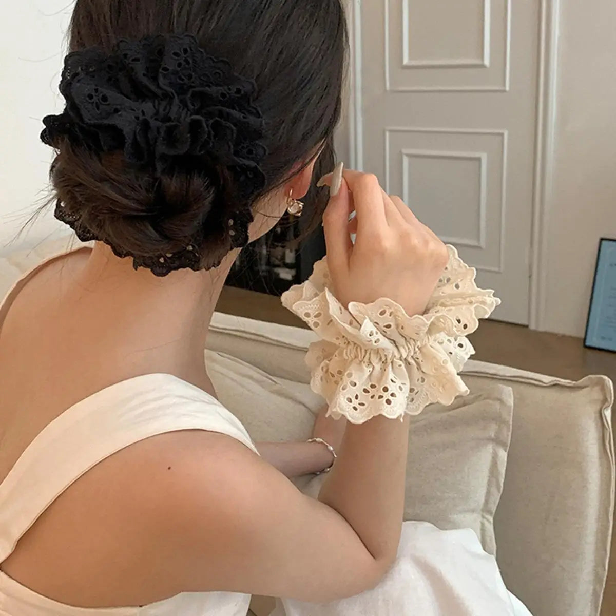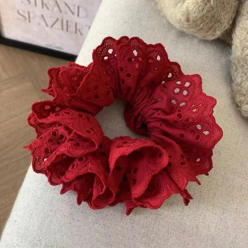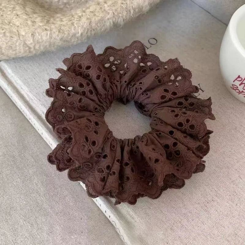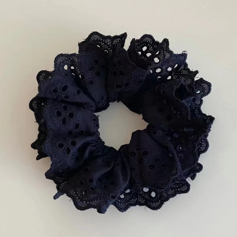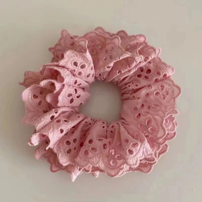 Lace Scrunchies for Women Elastic Hair Bands Ponytail Holders Tie Solid Color Hair Hoop Scrunchy Rubber Bands Women Hair Ring