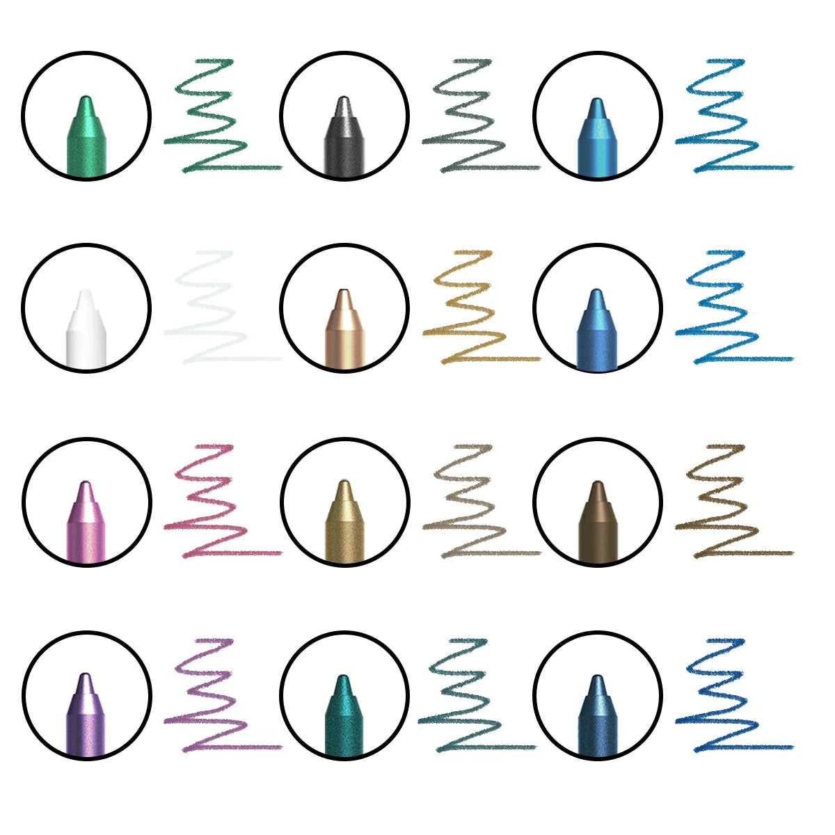12 Colors Set Glitter & Shimmer Eyeliner Stick Pack - Long-Wearing Blue Tone Eyeliner Pencil with Smooth Application - Versatile