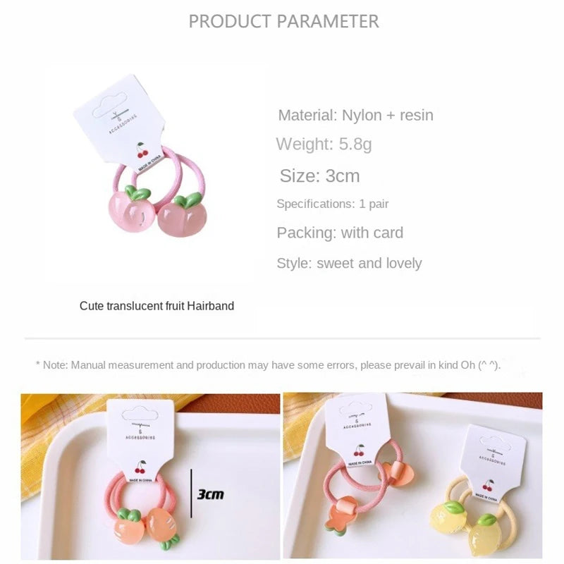 2PCS Kawaii Sweet Hair Ties Cute Cartoon Semi Transparent Fruit Strawberry Carrot Grape Lemon Elastic Rubber Band for Girls KIDS