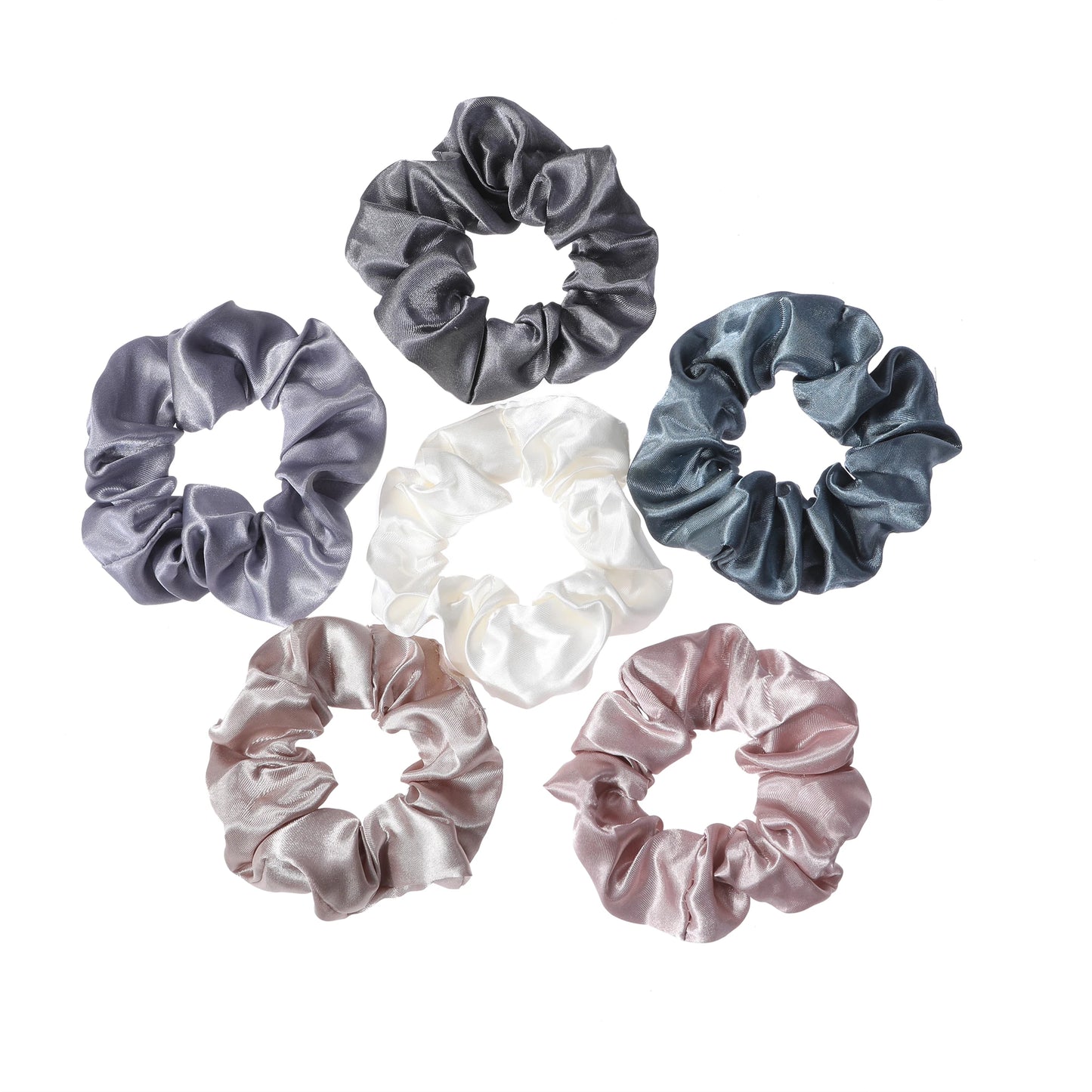 6-Piece Women's Pure Color Satin Large Scrunchie Daily Simple Atmospheric Set