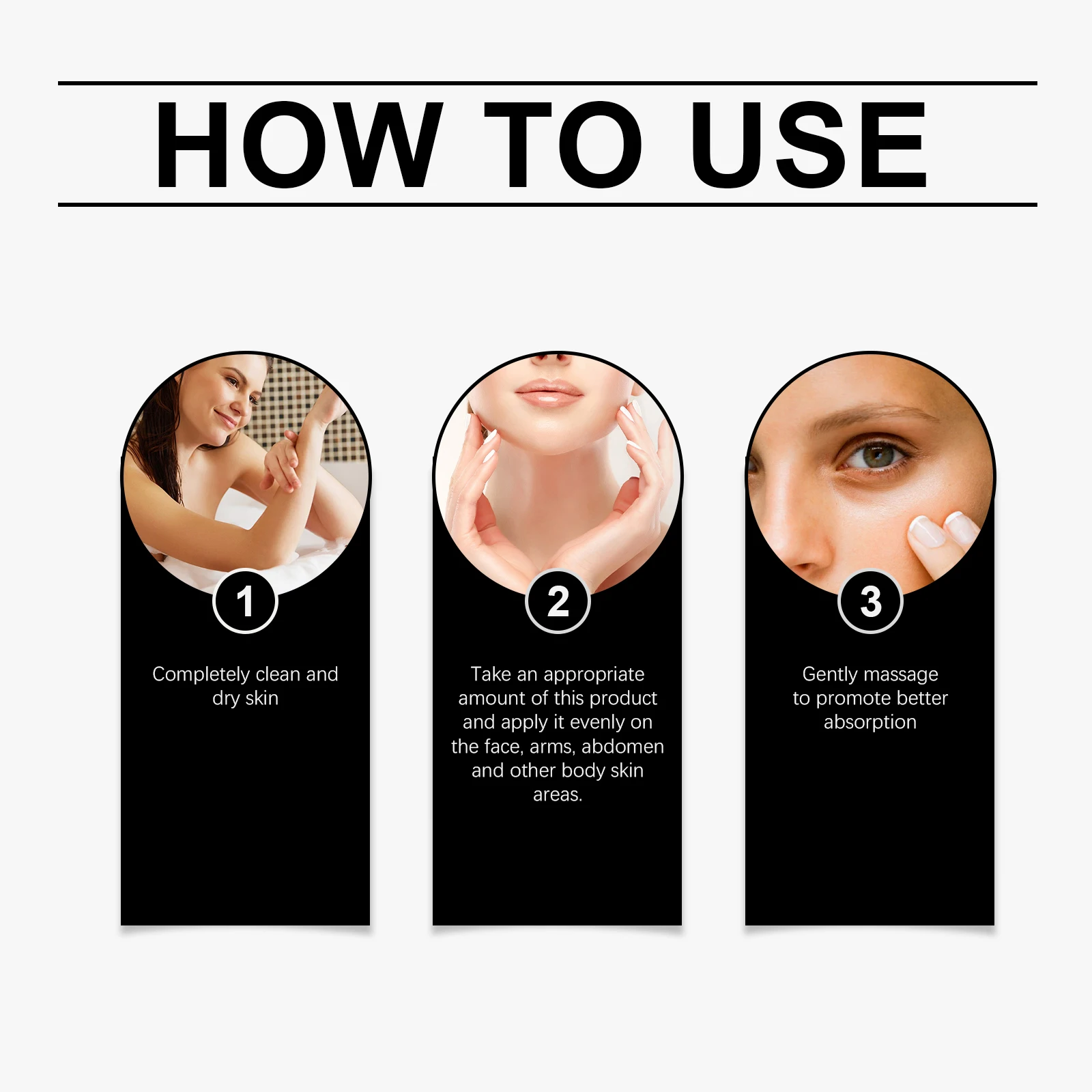 2.Take an appropriate amount of this product and apply it evenly on the face, arms, abdomen and other body skin areas.