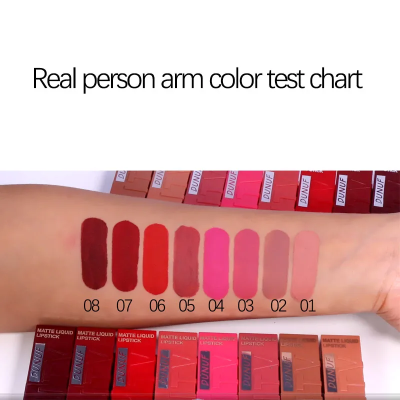 DUNUF 8-color matte velvet smooth easy-to-apply square tube lip gloss waterproof three-dimensional plumping lipstick