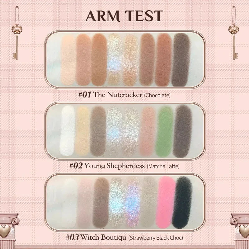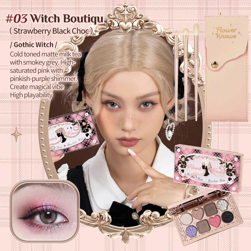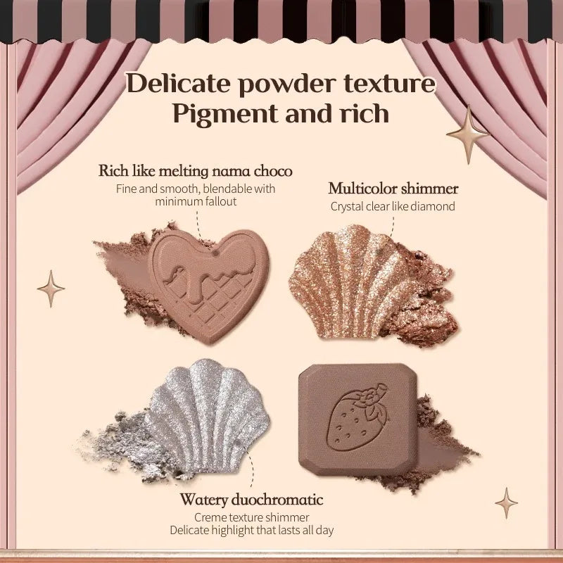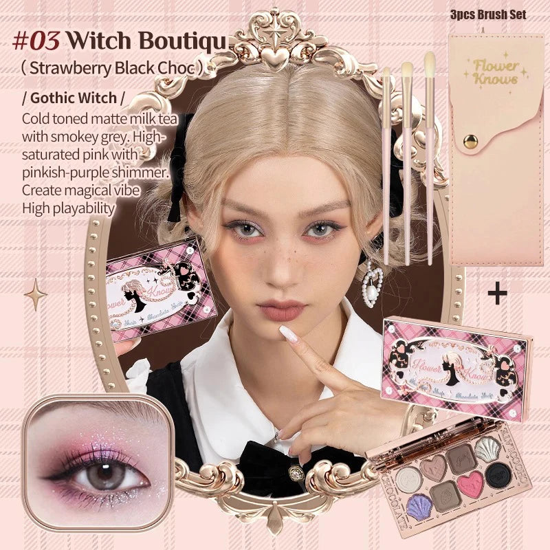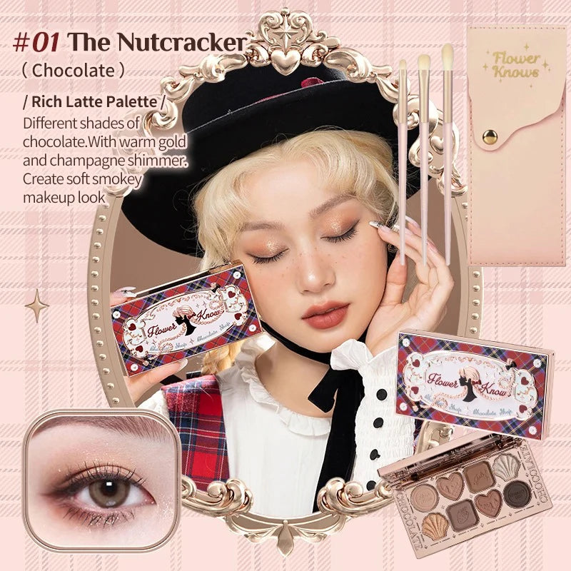 Flower Knows Chocolate Shop Highly Pigmented Eyeshadow Palette Shimmer Matte Glitter Long Lasting Vegan Eye Shadows Cruelty-free