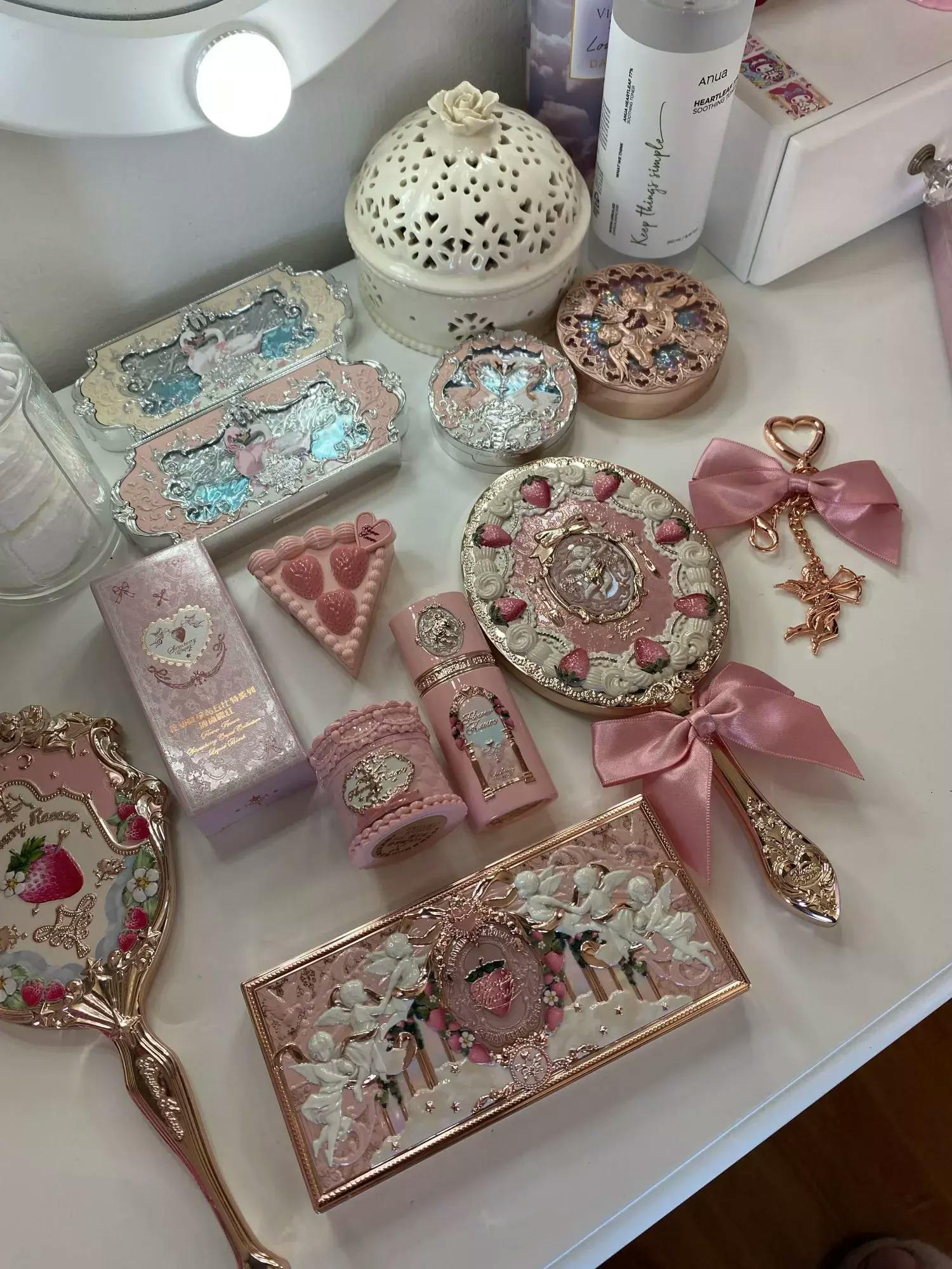 Flower Knows Strawberry Cupid Collection Makeup Kit Full Professional Face Palette Blush Eyeshadow Lip Cream Solid Perfume Sets