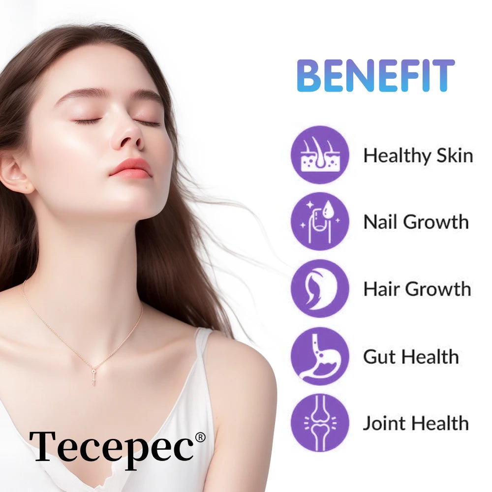 The Fountain of Youth, Ultimate Multi-Collagen Capsules; All the benefits that collagen hydrolysate has to offer; Found in hair, skin, nails, joints and muscles, collagen is the most abundant protein in the body; Our premium super collagen supplement helps increase skin elasticity and promotes soft, radiant skin while improving the appearance of fine lines and wrinkles; Feel your nails and hair grow thicker, stronger and longer; In addition to its beauty benefits, our scientifically engineered collagen restores important proteins the body needs to improve bone strength, joint support, mobility, flexibility, metabolism, digestion, immune health and more