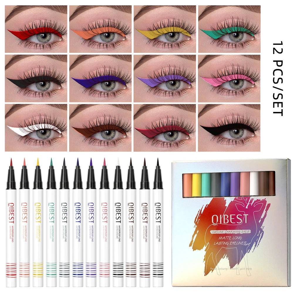 QIBEST Colored Eyeliner Set Waterproof Eyeliner Pencil Long Lasting Matte Eye Liner Makeup Colorful Liner Eyes Cosmetics Kits